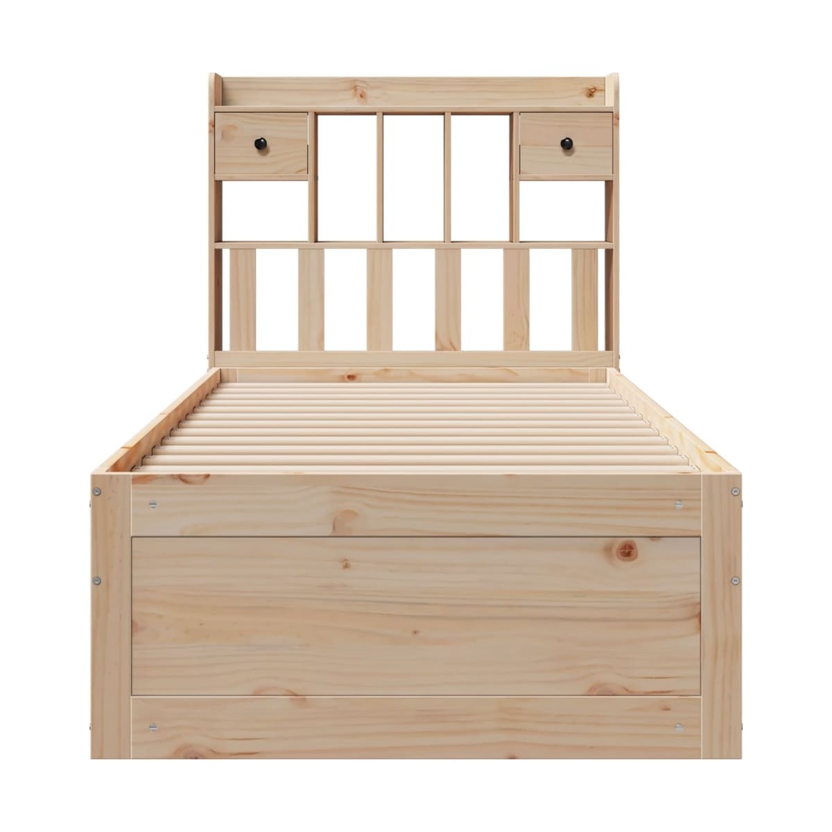 ¡Consigue una mejor noche de sueño reparador con esta cama con estantería! Es un aporte acogedor para cualquier dormitorio. Estructura estable y duradera: La madera de pino maciza es conocida por su resistencia y durabilidad. Sus vetas rectas y sus característicos nudos contribuyen a su encanto rústico.Somier de láminas para un soporte óptimo: La estructura de cama está equipada con un somier de láminas para el apoyo y la transpirabilidad del colchón.Amplio espacio de almacenamiento: El cabecero de estantería ofrece un amplio espacio de almacenamiento para mantener libros, artículos decorativos o pertenencias personales al alcance de la mano, lo que reduce el desorden en el dormitorio.Ahorro de espacio: Este cabecero es una opción de ahorro de espacio que puede sustituir la necesidad de una mesilla de noche, ayudando a maximizar el espacio de tu dormitorio, y haciéndolo ideal para espacios pequeños o limitados.Maniobrabilidad sin esfuerzo: Este cajón de almacenamiento bajo la cama cuenta con cuatro ruedas, que proporcionan una maniobrabilidad suave y sin esfuerzo para deslizarse dentro y fuera de debajo de tu cama. Información útil:El colchón no está incluido con la cama. Disponemos de una variada selección de colchones. Puedes echar un vistazo a nuestra tienda para buscar el colchón correspondiente.