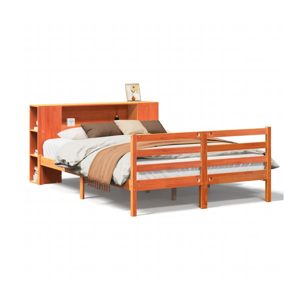 ¡Consigue una mejor noche de sueño reparador con esta cama con estantería! Es un aporte acogedor para cualquier dormitorio. Estructura estable y duradera: La madera de pino maciza es conocida por su resistencia y durabilidad. Sus vetas rectas y sus característicos nudos contribuyen a su encanto rústico.Somier de láminas para un soporte óptimo: La estructura de cama está equipada con un somier de láminas para el apoyo y la transpirabilidad del colchón.Amplio espacio de almacenamiento: El cabecero de estantería ofrece un amplio espacio de almacenamiento para mantener libros, artículos decorativos o pertenencias personales al alcance de la mano, lo que reduce el desorden en el dormitorio.Práctico pie de cama: El pie de cama no solo contribuye a la estabilidad general del marco de la cama, proporcionando un entorno seguro para dormir, sino que también asegura su colchón en su lugar y evita que las mantas, sábanas y otra ropa de cama se caigan del extremo de la cama, manteniendo una apariencia ordenada.Ahorro de espacio: Este cabecero es una opción de ahorro de espacio que puede sustituir la necesidad de una mesilla de noche, ayudando a maximizar el espacio de tu dormitorio, y haciéndolo ideal para espacios pequeños o limitados. Información útil:El colchón no está incluido con la cama. Disponemos de una variada selección de colchones. Puedes echar un vistazo a nuestra tienda para buscar el colchón correspondiente.