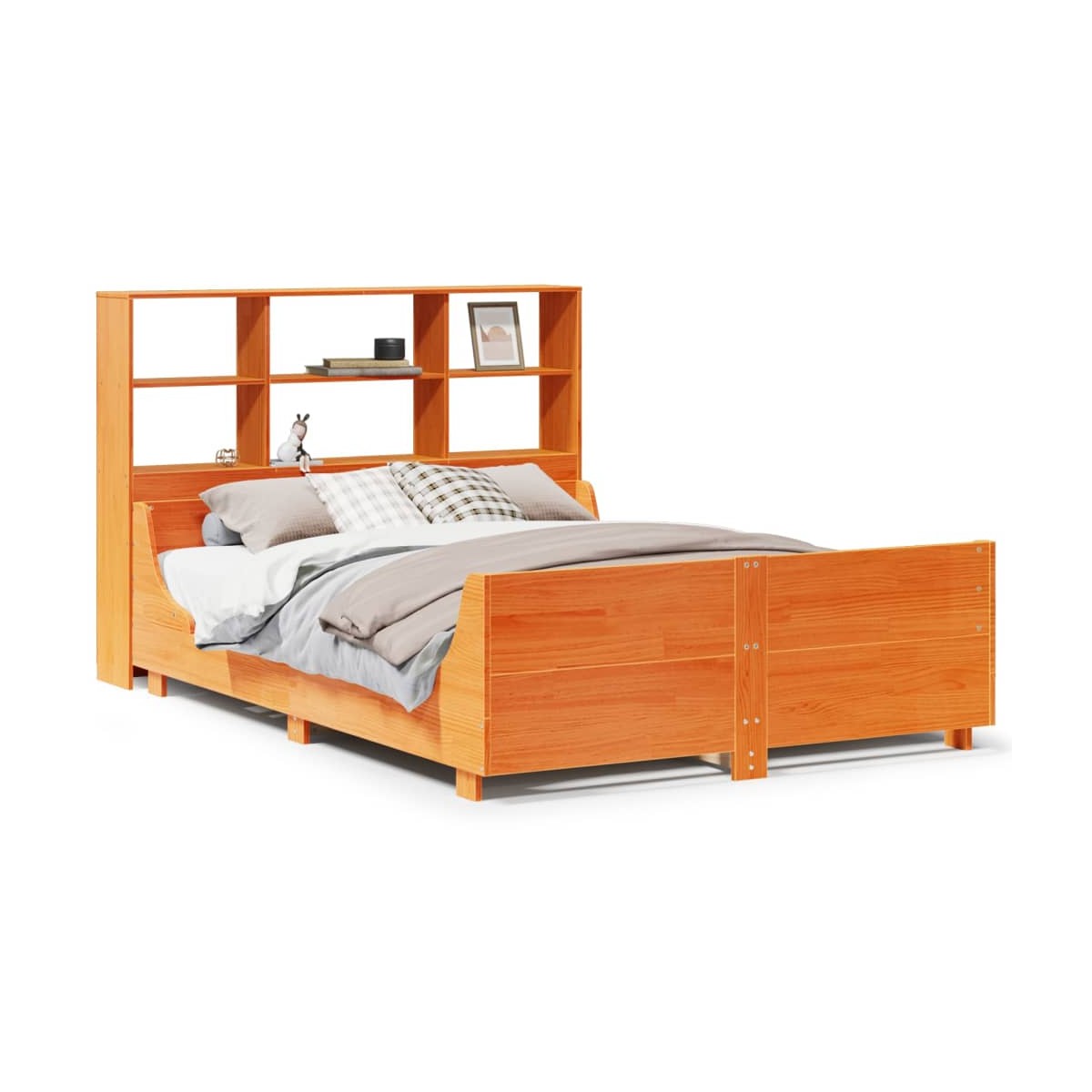 ¡Consigue una mejor noche de sueño reparador con esta cama con estantería! Es un aporte acogedor para cualquier dormitorio. Estructura estable y duradera: La madera de pino maciza es conocida por su resistencia y durabilidad. Sus vetas rectas y sus característicos nudos contribuyen a su encanto rústico. Somier de láminas para un soporte óptimo: La estructura de cama está equipada con un somier de láminas para el apoyo y la transpirabilidad del colchón. Amplio espacio de almacenamiento: El cabecero de estantería ofrece un amplio espacio de almacenamiento para mantener libros, artículos decorativos o pertenencias personales al alcance de la mano, lo que reduce el desorden en el dormitorio. Práctico pie de cama: El pie de cama no solo contribuye a la estabilidad general del marco de la cama, proporcionando un entorno seguro para dormir, sino que también asegura su colchón en su lugar y evita que las mantas, sábanas y otra ropa de cama se caigan del extremo de la cama, manteniendo una apariencia ordenada. Ahorro de espacio: Este cabecero es una opción de ahorro de espacio que puede sustituir la necesidad de una mesilla de noche, ayudando a maximizar el espacio de tu dormitorio, y haciéndolo ideal para espacios pequeños o limitados. Información útil:El colchón no está incluido con la cama. Disponemos de una variada selección de colchones. Puedes echar un vistazo a nuestra tienda para buscar el colchón correspondiente.