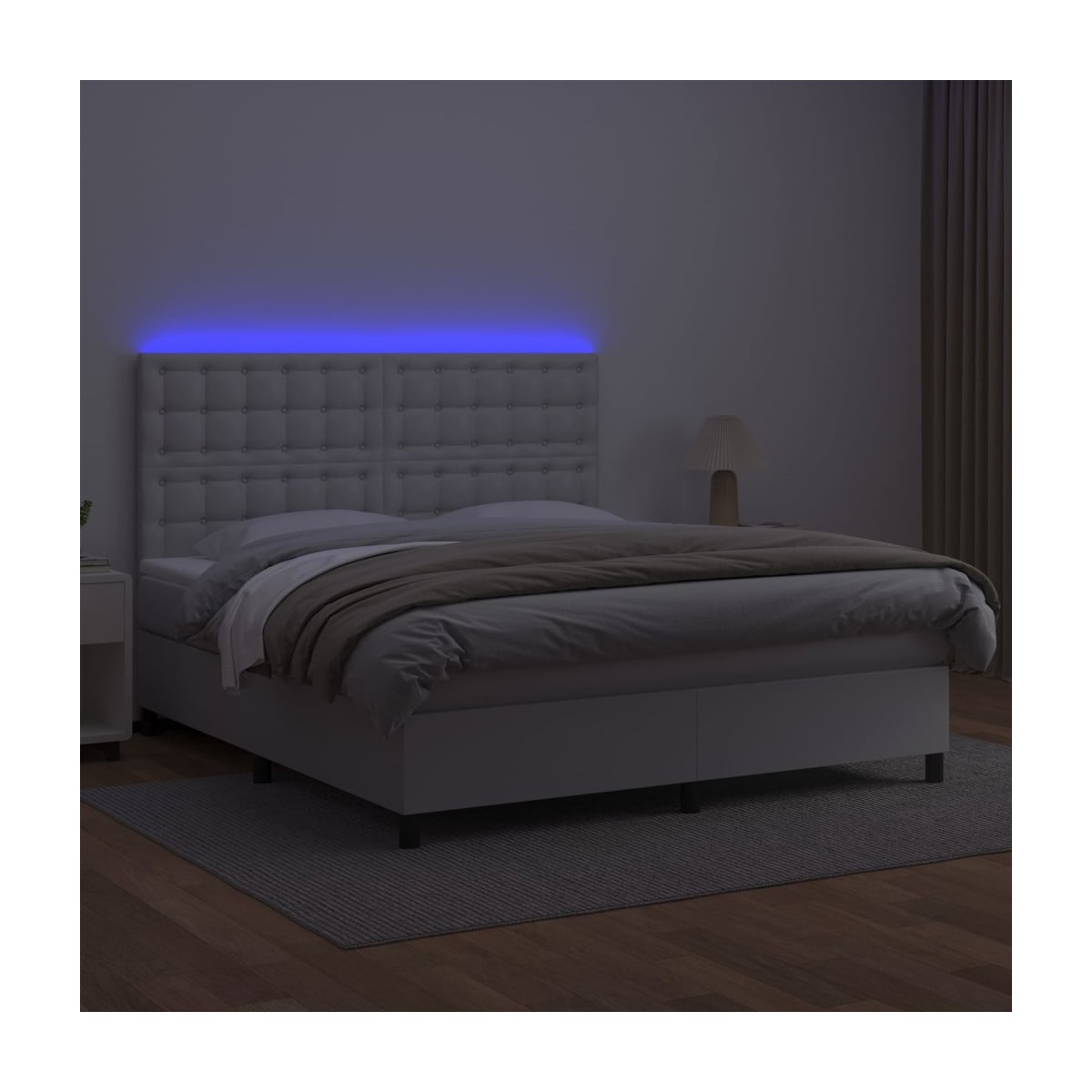 Utiliza esta cama box spring con colchón y LED para disfrutar de un sueño reparador. Es el centro de atención de tu dormitorio. Material duradero: El cuero sintético de primera calidad es un material muy duradero. Es resistente a las manchas, por lo que es fácil de limpiar con un paño húmedo. Además, la superficie lisa da un aspecto lujoso y la belleza del cuero auténtico.Cabecero práctico: El cabecero de la cama es ajustable en altura según tus preferencias. El cabecero de la cama te proporciona un excelente apoyo para la espalda mientras estás sentado en la cama para leer o ver la televisión.Tira de LED de colores: Alegra la oscuridad con luces LED de colores.Colchón de muelles ensacados: El muelle ensacado individual incorporado es conocido por su altísima calidad, al tiempo que garantiza un alto nivel de durabilidad y adaptabilidad. Puede absorber eficazmente el ruido y los golpes causados por los lanzamientos y los giros.Protector de colchón respetuoso con la piel: El protector de colchón tiene una funda de tejido resistente y respetuoso con la piel, que lo hace suave y confortable. Nota:Por razones de higiene, el colchón no puede devolverse si se ha quitado o abierto el embalaje.Únicamente puedes cortar por la parte con el símbolo de las tijeras y únicamente la parte con el USB seguirá funcionando como antes.Cada producto viene con un manual de montaje en la caja para facilitar el montaje.El producto tiene un conector USB, pero no se incluye la fuente de alimentación USB de 5 V certificada.