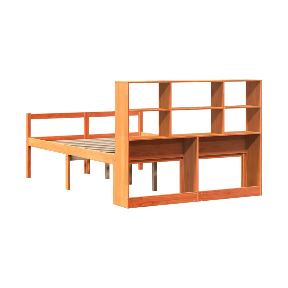 ¡Consigue una mejor noche de sueño reparador con esta cama con estantería! Es un aporte acogedor para cualquier dormitorio. Estructura estable y duradera: La madera de pino maciza es conocida por su resistencia y durabilidad. Sus vetas rectas y sus característicos nudos contribuyen a su encanto rústico.Somier de láminas para un soporte óptimo: La estructura de cama está equipada con un somier de láminas para el apoyo y la transpirabilidad del colchón.Amplio espacio de almacenamiento: El cabecero de estantería ofrece un amplio espacio de almacenamiento para mantener libros, artículos decorativos o pertenencias personales al alcance de la mano, lo que reduce el desorden en el dormitorio.Práctico pie de cama: El pie de cama no solo contribuye a la estabilidad general del marco de la cama, proporcionando un entorno seguro para dormir, sino que también asegura su colchón en su lugar y evita que las mantas, sábanas y otra ropa de cama se caigan del extremo de la cama, manteniendo una apariencia ordenada.Ahorro de espacio: Este cabecero es una opción de ahorro de espacio que puede sustituir la necesidad de una mesilla de noche, ayudando a maximizar el espacio de tu dormitorio, y haciéndolo ideal para espacios pequeños o limitados. Información útil:El colchón no está incluido con la cama. Disponemos de una variada selección de colchones. Puedes echar un vistazo a nuestra tienda para buscar el colchón correspondiente.