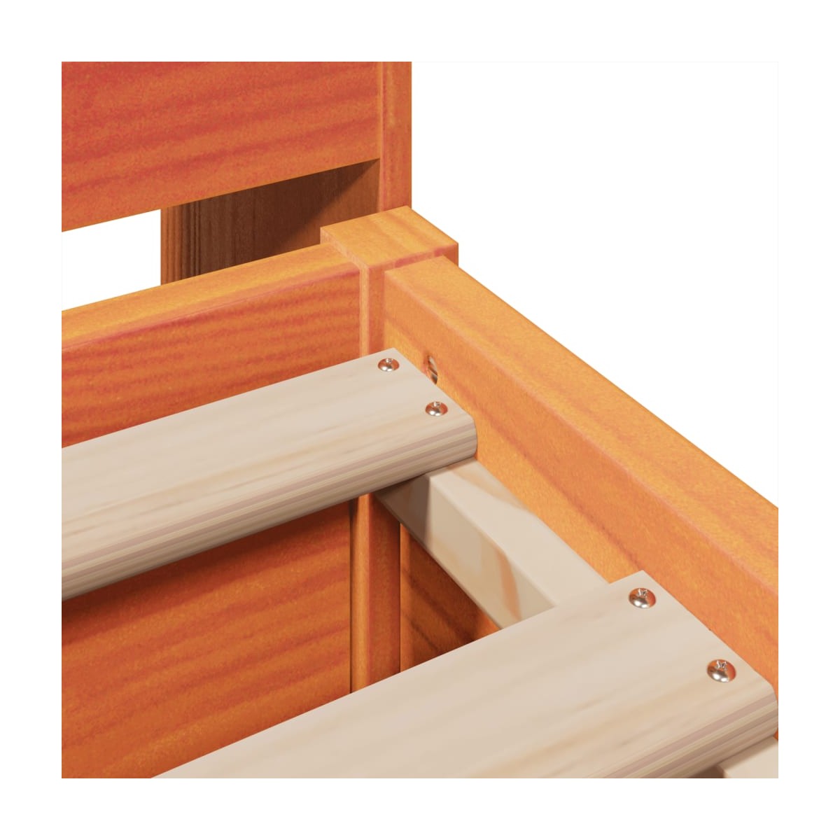 ¡Disfruta de una buena noche de sueño en esta estructura de cama de madera! Es un aporte práctico y decorativo para la casa. Madera de pino maciza: La madera de pino maciza es un bonito material natural. La madera de pino tiene vetas rectas, y los nudos dan al material su distintivo aspecto rústico.Estructura de cama resistente: La estructura de madera garantiza su solidez y estabilidad. Los listones de madera contrachapada proporcionan una buena distribución del peso, lo que garantiza que el colchón se mantenga en su sitio con cada giro y vuelta del cuerpo mientras duermes.Cabecero funcional: El cabecero de la cama de madera puede mantener el colchón en su sitio. Además, el cabecero te brinda un excelente soporte para la espalda mientras estás sentado leyendo o mirando la televisión.Amplio espacio de almacenamiento: Este elegante cabecero cuenta con 6 prácticos compartimentos y 2 cajones, lo que ofrece un amplio espacio de almacenamiento para mantener todos los elementos esenciales de la noche al alcance de la mano. Información útil:El colchón no está incluido con la cama. Disponemos de una variada selección de colchones. Puedes echar un vistazo a nuestra tienda para buscar el colchón correspondiente.