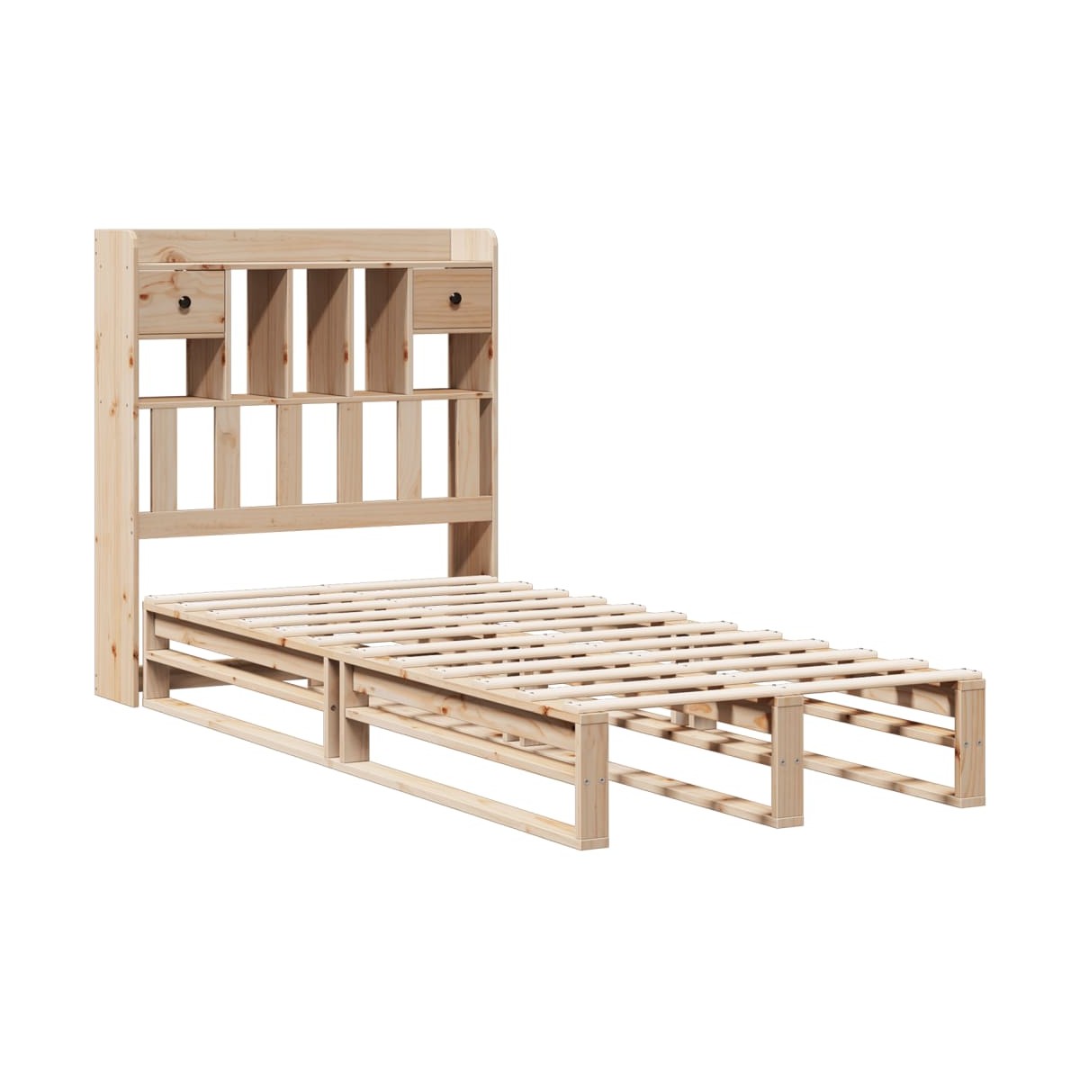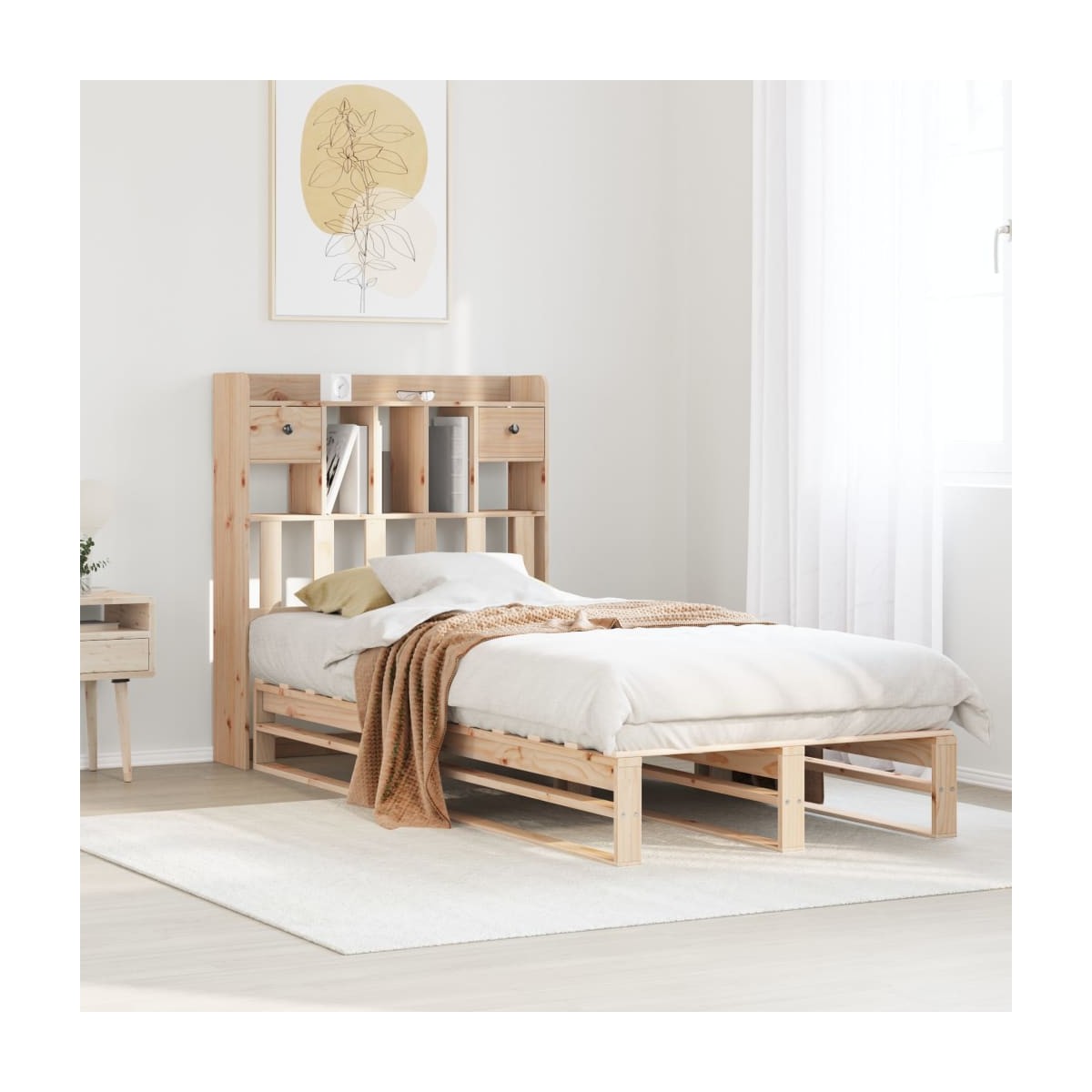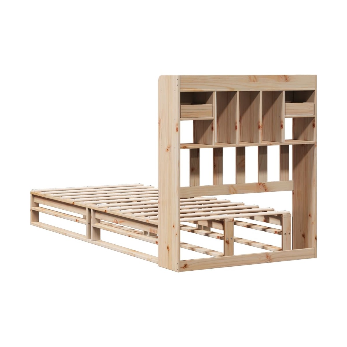 ¡Consigue una mejor noche de sueño reparador con esta cama con estantería! Es un aporte acogedor para cualquier dormitorio. Estructura estable y duradera: La madera de pino maciza es conocida por su resistencia y durabilidad. Sus vetas rectas y sus característicos nudos contribuyen a su encanto rústico.Somier de láminas para un soporte óptimo: La estructura de cama está equipada con un somier de láminas para el apoyo y la transpirabilidad del colchón.Amplio espacio de almacenamiento: El cabecero de estantería ofrece un amplio espacio de almacenamiento para mantener libros, artículos decorativos o pertenencias personales al alcance de la mano, lo que reduce el desorden en el dormitorio.Ahorro de espacio: Este cabecero es una opción de ahorro de espacio que puede sustituir la necesidad de una mesilla de noche, ayudando a maximizar el espacio de tu dormitorio, y haciéndolo ideal para espacios pequeños o limitados. Información útil:El colchón no está incluido con la cama. Disponemos de una variada selección de colchones. Puedes echar un vistazo a nuestra tienda para buscar el colchón correspondiente.