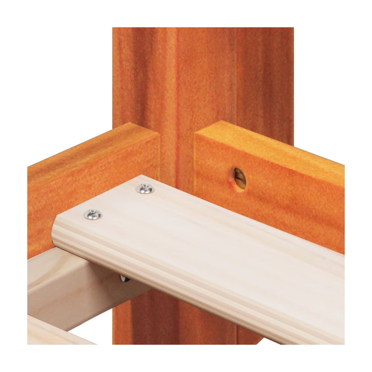 Esta litera infantil con techo es elegante y funcional, por lo que es un aporte perfecto para cualquier habitación con espacio limitado. Madera de pino maciza: La madera de pino maciza es un bonito material natural. La madera de pino tiene vetas rectas, y los nudos dan al material su distintivo aspecto rústico.Diseño seguro: La cama alta está diseñada pensando en la seguridad. Cuenta con barandillas para evitar que el usuario salga rodando mientras duerme.Listones robustos: Los listones de madera contrachapada proporcionan una buena distribución del peso, lo que garantiza que el colchón se mantenga en tu sitio con cada giro y vuelta del cuerpo mientras duermes.Gran diversión: Al combinar el techo con la cama de tu hijo, puedes crear un escondite que le ofrezca a tu hijo mucha diversión a la hora de acostarse. Este innovador añadido al cuarto no solo será un punto emocionante, sino que también traerá asombro y emoción a la habitación de los niños.Adecuado para espacios limitados: La estructura de cama es una excelente opción para cualquier habitación con espacio limitado, ya que proporciona dos camas individuales con un diseño compacto.Puerta lateral abierta: El techo cuenta con una puerta lateral abierta, lo que facilita el acceso para que tus hijos entren y salgan de la cama. Información útil:El colchón no está incluido con la cama. Disponemos de una variada selección de colchones. Puedes echar un vistazo a nuestra tienda para buscar el colchón correspondiente.