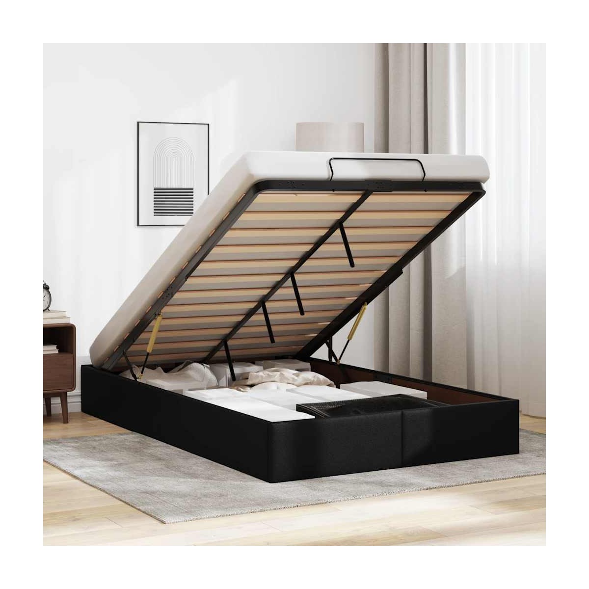 Este marco de cama otomana combina a la perfección la estética moderna con la funcionalidad práctica, ofreciéndole tanto una solución de almacenamiento como una experiencia de sueño cómoda. Larga duración y fácil mantenimiento: El cuero sintético es un material muy duradero y resistente a las manchas, por lo que es fácil de limpiar con un paño húmedo. Su superficie lisa le da un aspecto elegante que recuerda al cuero auténtico.Amplio espacio de almacenamiento debajo de la cama: este marco de cama cuenta con un amplio espacio de almacenamiento debajo, lo que maximiza el espacio sin requerir espacio adicional en el piso. Proporciona un amplio espacio para guardar artículos como edredones adicionales, almohadas y ropa de temporada, lo que lo hace ideal para espacios más pequeños o más reducidos.Cómodo mecanismo de elevación: el mecanismo de elevación hidráulico integrado proporciona un fácil acceso a sus pertenencias guardadas debajo de la cama. Con solo tirar de la manija, la base de láminas se levanta suavemente, lo que le permite recuperar sus artículos de manera rápida y sin esfuerzo.No requiere somier: el marco de la cama incluye una base de láminas que proporciona un excelente soporte y transpirabilidad para su colchón, eliminando la necesidad de un somier. Información útil:El colchón no está incluido con la cama. Ofrecemos una variada selección de colchones. Puedes echar un vistazo a nuestra tienda para buscar el colchón correspondiente.