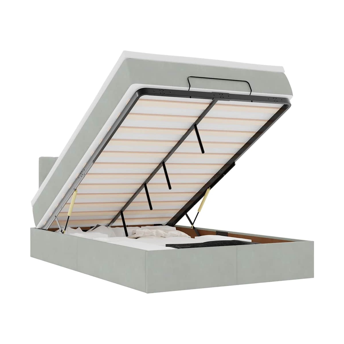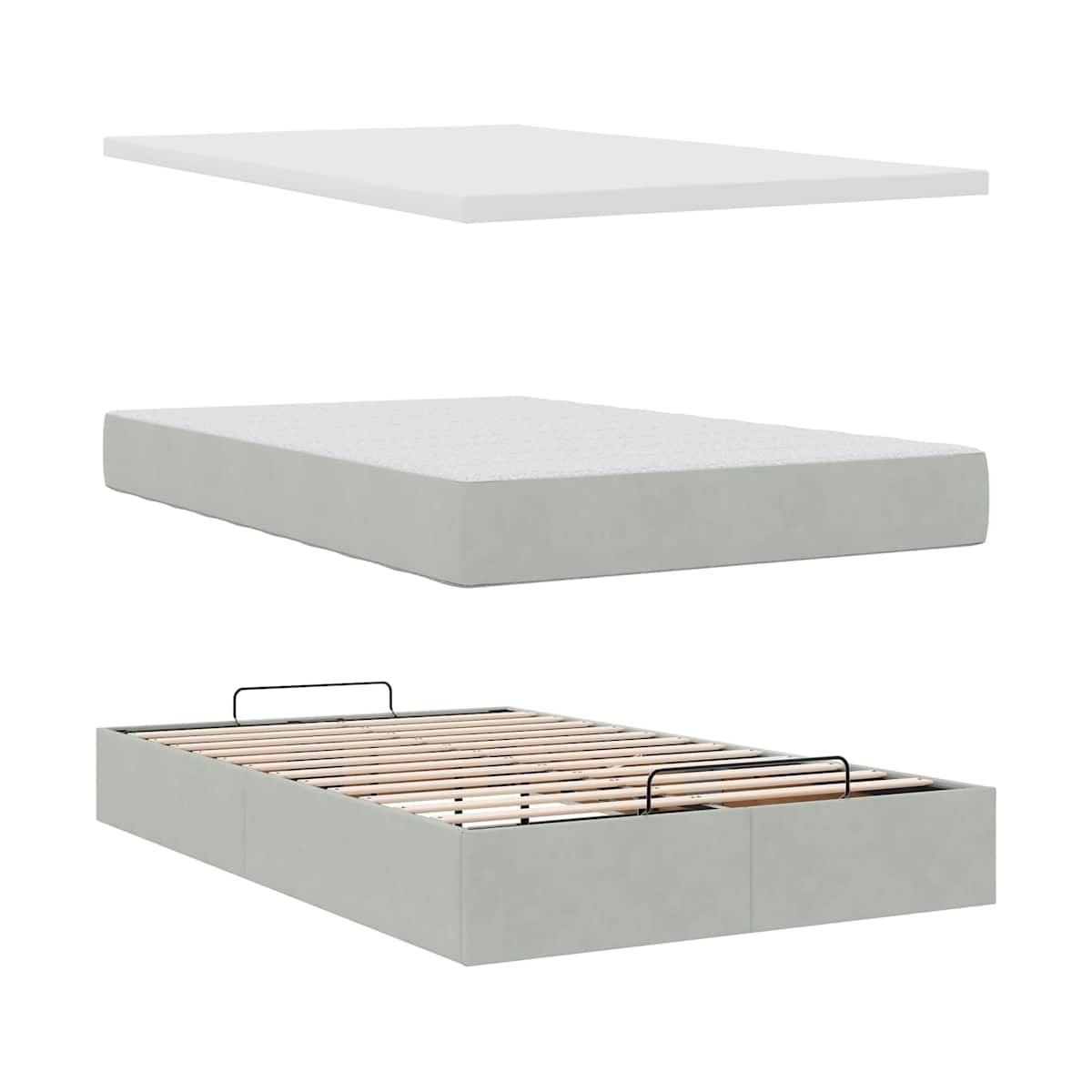 ¡Utilice esta estructura de cama otomana con colchón para disfrutar de una noche de sueño reparador! Le ofrece una solución de almacenamiento y una experiencia de sueño cómoda. Material suave y cómodo: La tela de terciopelo ofrece una superficie suave y lisa que proporciona una agradable sensación contra el tacto, aportándole calidez y el máximo confort.Colchón de muelles ensacados: Este colchón de muelles ensacados cuenta con muelles ensacados individuales que funcionan de forma independiente para proporcionar un apoyo personalizado reaccionando únicamente a la presión de cada zona. Este diseño evita que se enrolle y reduce la transferencia de movimiento en comparación con los colchones tradicionales de bobina abierta. Cada muelle ensacado sostiene el cuerpo individualmente.amplio espacio de almacenamiento debajo de la cama: gracias al mecanismo de elevación hidráulico, el marco de la cama ofrece un amplio espacio de almacenamiento debajo de la cama, maximizando el espacio sin ocupar área adicional en el piso.Cubrecolchón cómodo: Este cubrecolchón mejora el soporte y la comodidad con su superficie suave y transpirable al tiempo que prolonga la vida útil de su colchón. Su funda extraíble permite un fácil lavado, lo que facilita el mantenimiento. Información útil:Por razones de higiene, el colchón no puede devolverse si se ha quitado o abierto el embalaje.
