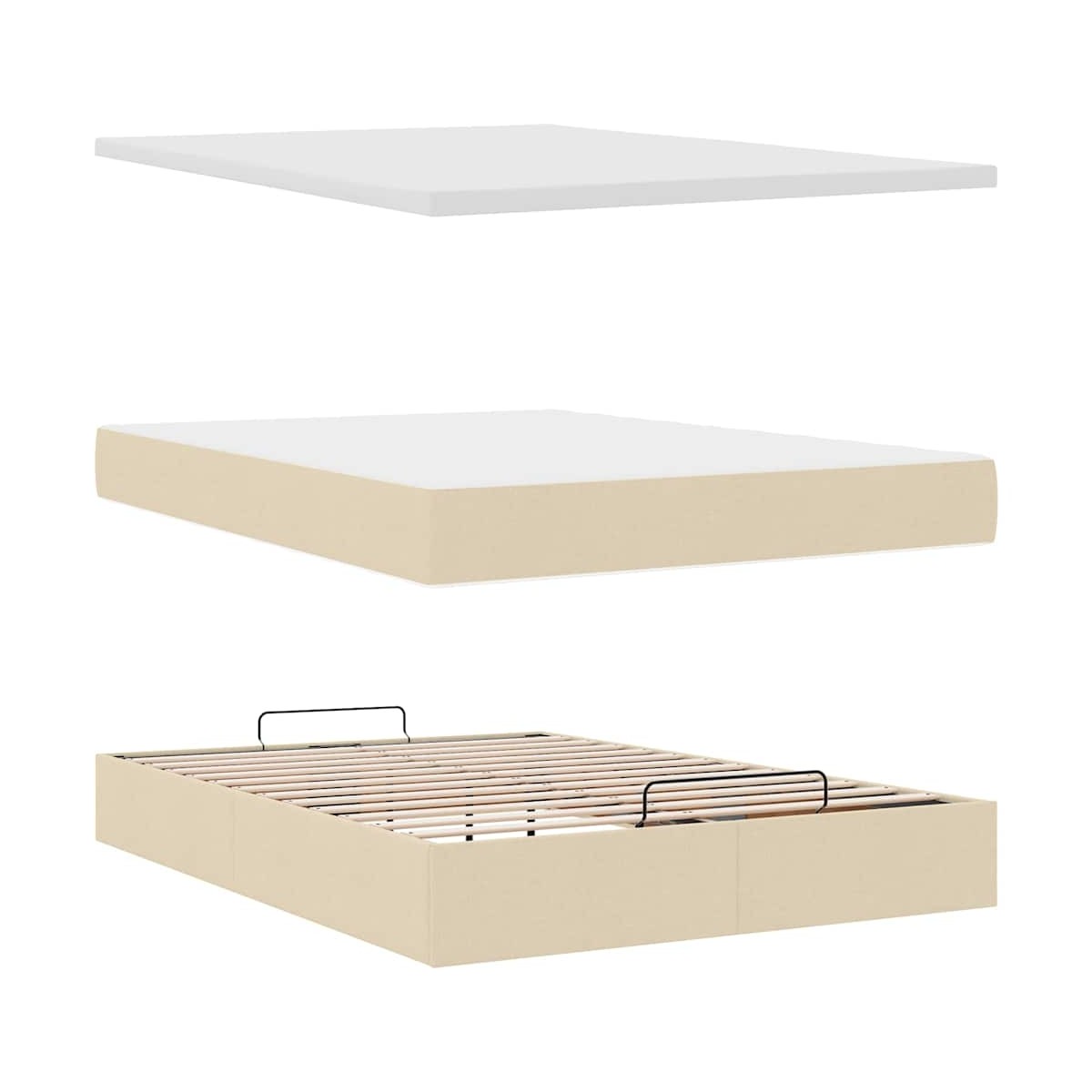 ¡Utilice esta estructura de cama otomana con colchón para disfrutar de una noche de sueño reparador! Le ofrece una solución de almacenamiento y una experiencia de sueño cómoda. Material suave y duradero: La tela de poliéster ofrece una combinación de suavidad, transpirabilidad y durabilidad, lo que garantiza que experimentes la máxima comodidad.Colchón de muelles ensacados: Este colchón de muelles ensacados cuenta con muelles ensacados individuales que funcionan de forma independiente para proporcionar un apoyo personalizado reaccionando únicamente a la presión de cada zona. Este diseño evita que se enrolle y reduce la transferencia de movimiento en comparación con los colchones tradicionales de bobina abierta. Cada muelle ensacado sostiene el cuerpo individualmente.amplio espacio de almacenamiento debajo de la cama: gracias al mecanismo de elevación hidráulico, el marco de la cama ofrece un amplio espacio de almacenamiento debajo de la cama, maximizando el espacio sin ocupar área adicional en el piso.Cubrecolchón cómodo: Este cubrecolchón mejora el soporte y la comodidad con su superficie suave y transpirable al tiempo que prolonga la vida útil de su colchón. Su funda extraíble permite un fácil lavado, lo que facilita el mantenimiento.Luces LED para un ambiente agradable: Esta cama cuenta con luces LED que se pueden ajustar fácilmente para crear un espectáculo de luces personalizado. Puedes personalizar los modos, los colores y el brillo para mejorar el ambiente de tu espacio interior. Información útil:El producto tiene un conector USB que necesita una fuente de alimentación USB certificada de 5 V (no incluida).Por razones de higiene, el colchón no puede devolverse si se ha quitado o abierto el embalaje.Únicamente puedes cortar por la parte con el símbolo de las tijeras y únicamente la parte con el USB seguirá funcionando como antes.
