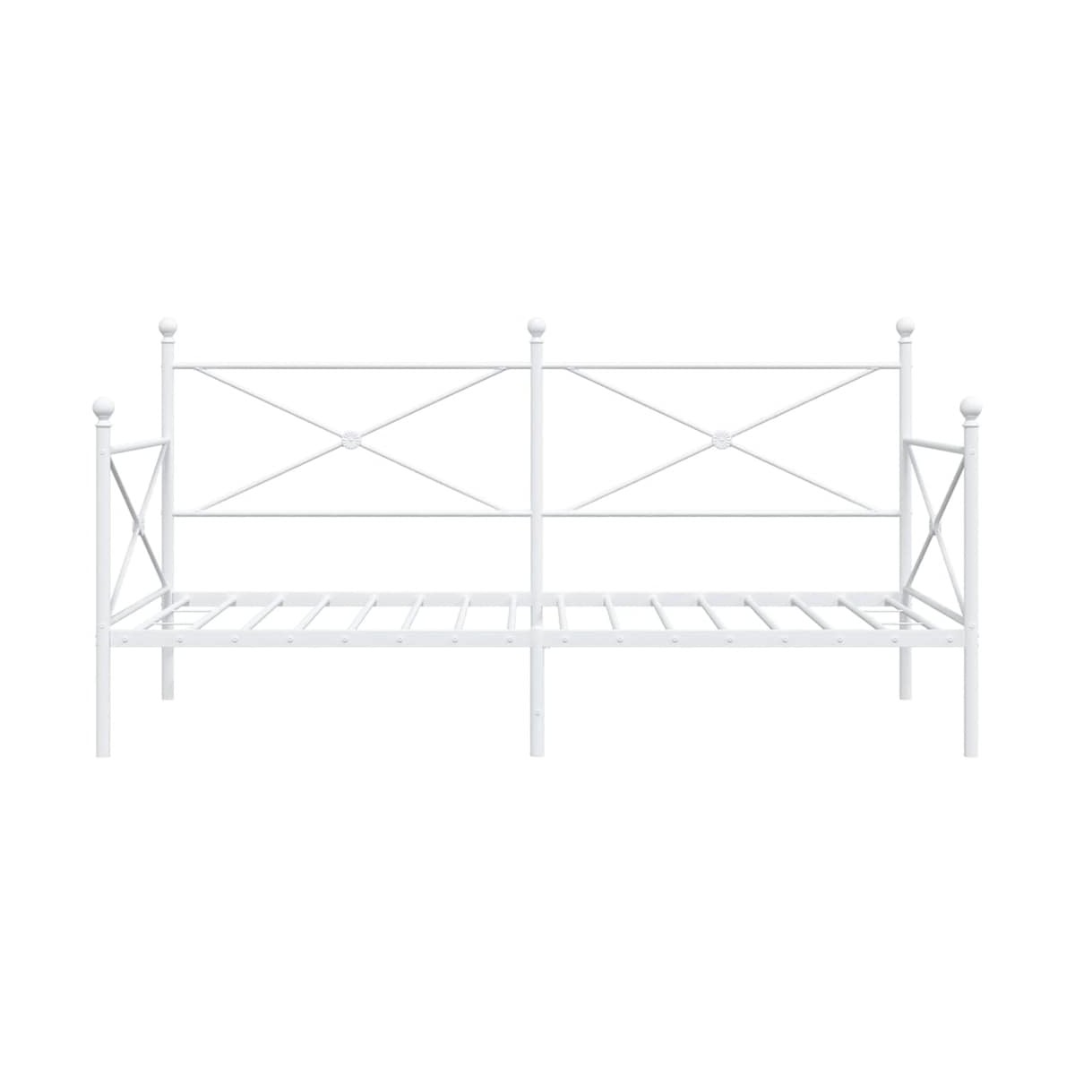 Este elegante diván ofrece un lugar acogedor para descansar y un práctico espacio de almacenamiento, lo que lo convierte en el complemento perfecto para cualquier dormitorio o sala de estar. Estructura estable y duradera: El acero es fuerte, estable y duradero, lo que lo convierte en la opción ideal para una amplia gama de aplicaciones, desde la fabricación de muebles hasta la construcción.Somier de láminas para un soporte óptimo: El sofá cama está equipado con un somier de láminas para proporcionar apoyo y transpirabilidad a su colchón.Espacio de almacenamiento adicional: para mayor comodidad, la cama de invitados tiene un espacio adicional debajo para mantener sus cajas de almacenamiento fuera de la vista.Patas estables y duraderas: este sofá cama está sostenido por patas resistentes que garantizan estabilidad, seguridad y firmeza. Información útil:El colchón no está incluido con la cama. Ofrecemos una variada selección de colchones. Puedes echar un vistazo a nuestra tienda para buscar el colchón correspondiente.