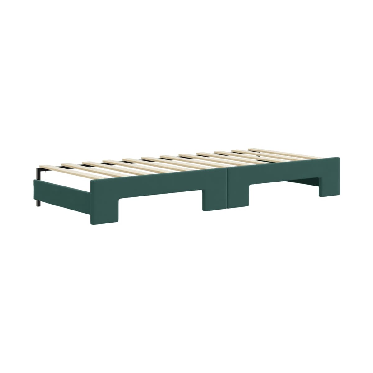Este sofá cama 2 en 1 con cama nido, que sirve como sofá y cama, es un complemento práctico y llamativo para tu salón o dormitorio. Sofá cama versátil: El sofá cama funciona como sofá durante el día y se convierte fácilmente en una cama doble por la noche sacando la cama nido, lo que proporciona una solución práctica para recibir invitados y maximizar el espacio.Amplio espacio de almacenamiento: Esta cama de invitados tiene dos cajones con ruedas que brindan un amplio espacio para guardar ropa, calcetines, juguetes, cojines, etc.Cómodo colchón de espuma: Esta cama se suministra con dos colchones de espuma para un máximo apoyo y una comodidad óptima.Terciopelo suave y construcción sólida: Este sofá cama tiene una estructura resistente hecha de madera y metal y está tapizado en terciopelo suave y cómodo.
