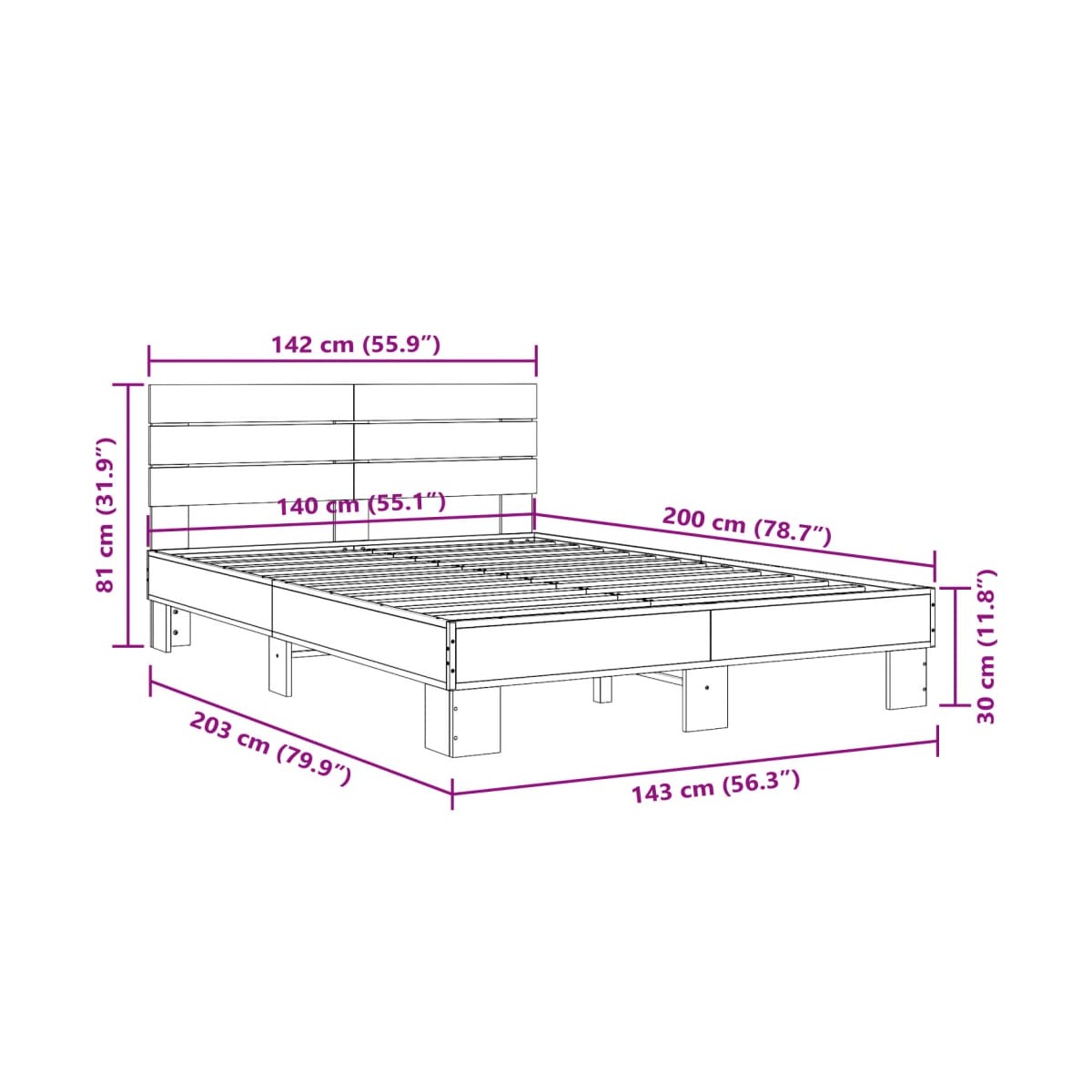 - Dimensiones de colchón adecuado: 140 x 200 cm (ancho x largo) (el colchón no está incluido)