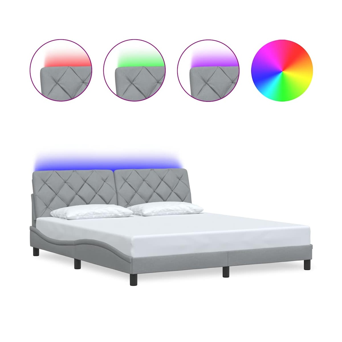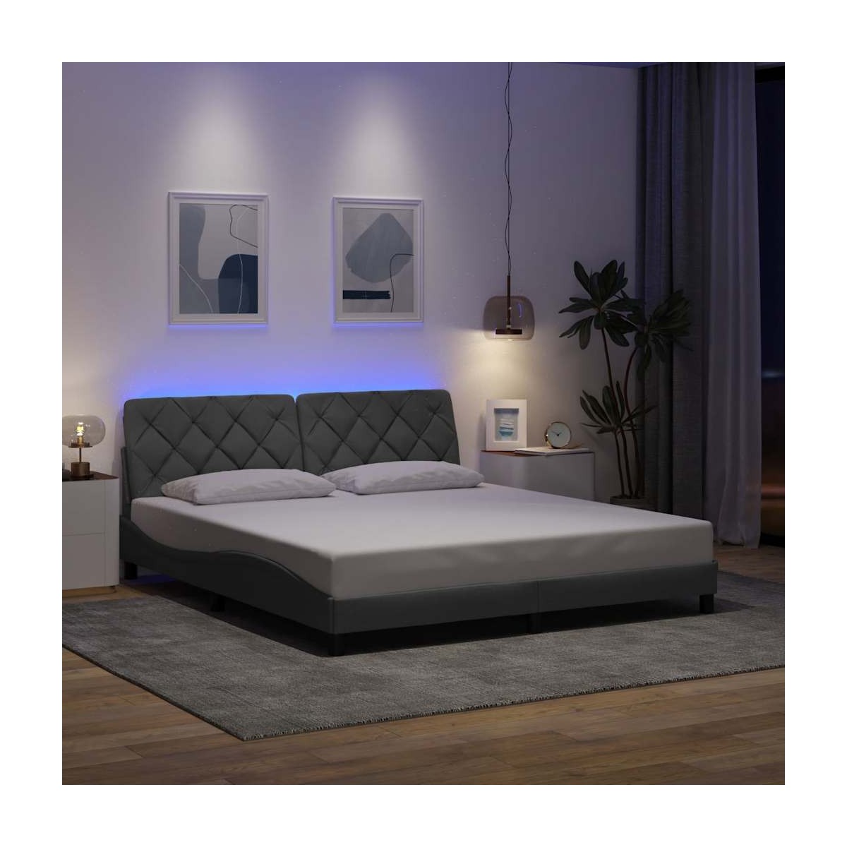 ¡Consigue tener un sueño reparador con esta estructura de cama con luces LED! Es un aporte acogedor para cualquier dormitorio. Material suave y duradero: La tela de poliéster ofrece una combinación de suavidad, transpirabilidad y durabilidad, lo que garantiza que experimentes la máxima comodidad.Listones para un soporte óptimo: El somier se completa con listones para ofrecer un soporte esencial y transpirabilidad a tu colchón.Cabecero versátil: Esta estructura de cama viene con un cabecero que proporciona un excelente soporte para la espalda cuando te sientas en la cama para leer o ver la televisión, a la vez que sirve como elemento decorativo.Luces LED para un ambiente agradable: Esta cama cuenta con luces LED que se pueden ajustar fácilmente para crear un espectáculo de luces personalizado. Puedes personalizar los modos, los colores y el brillo para mejorar el ambiente de tu espacio interior.Diseño lateral ondulado: El look ondulado de la estructura de la cama es elegante y sofisticado, agregando un toque moderno y elegante a tu decoración, convirtiéndolo en el foco de atención de tu dormitorio. Información útil:El colchón no está incluido con la cama. Ofrecemos una variada selección de colchones. Puedes echar un vistazo a nuestra tienda para buscar el colchón correspondiente.El producto tiene un conector USB que necesita una fuente de alimentación USB certificada de 5 V (no incluida).