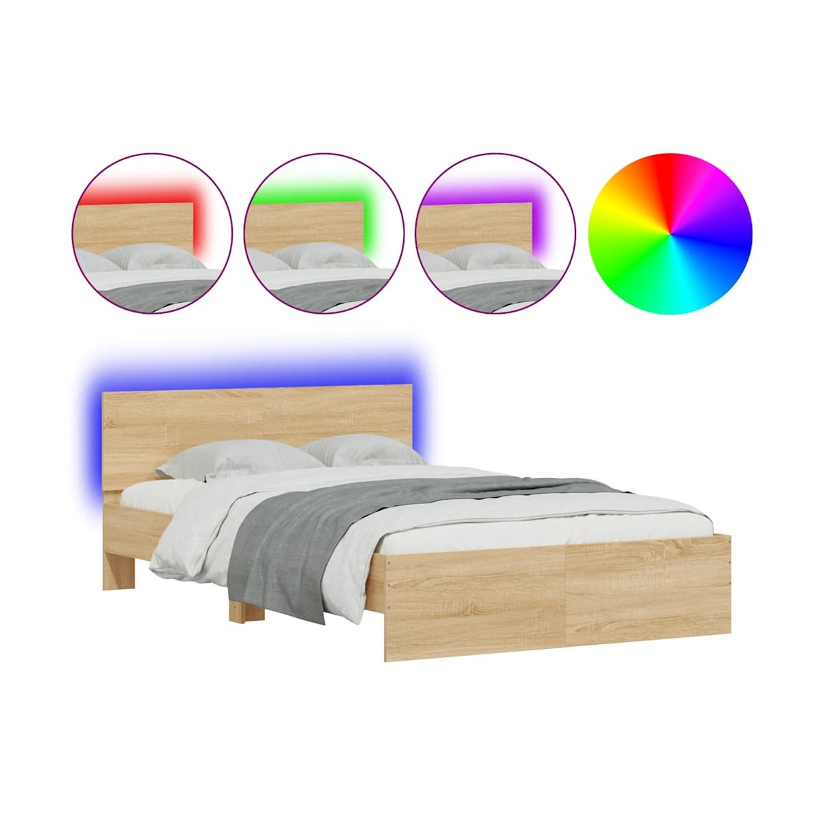 ¡Consigue tener un sueño reparador con esta estructura de cama con luz LED! Es un aporte acogedor para cualquier dormitorio. Material duradero: La madera de ingeniería tiene una calidad excepcional, con una superficie lisa y también cuenta con fuerza, estabilidad y resistencia a la humedad.Luces LED RGB: La cama está equipada con luces LED RGB. Con varios menús personalizables, puedes cambiar fácilmente el color de las luces e incluso configurarlas para que se ajusten automáticamente. Estas luces LED no sólo realzan el look moderno de la cama, sino que también aumentan su atractivo.Excelente soporte: El cabecero de la cama brinda un excelente soporte para la espalda mientras estás sentado en la cama para leer o ver la televisión.Listones robustos: Los listones de madera contrachapada proporcionan una buena distribución del peso, lo que garantiza que el colchón se mantenga en tu sitio con cada giro y vuelta del cuerpo mientras duermes. Información útil:El colchón no está incluido con la cama. Ofrecemos una variada selección de colchones. Puedes echar un vistazo a nuestra tienda para buscar el colchón correspondiente.El producto tiene un conector USB que necesita una fuente de alimentación USB certificada de 5 V (no incluida).