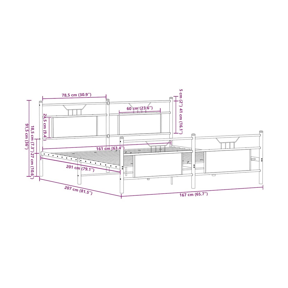 - Dimensiones totales: 207 x 167 x 91,5 cm (largo x ancho x alto)