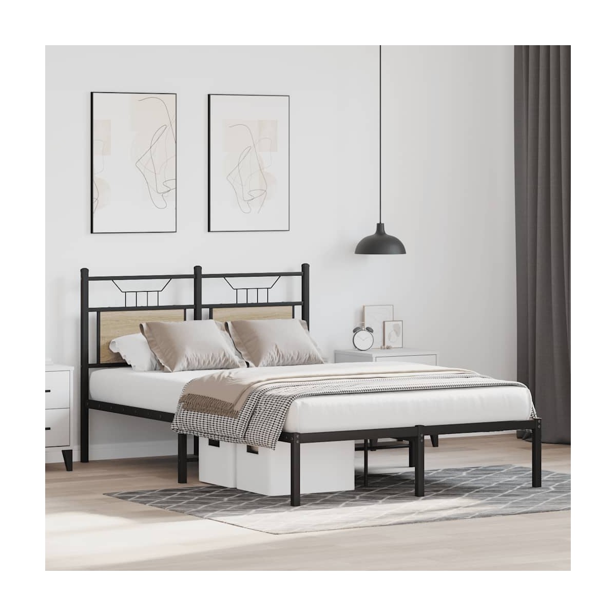 Consigue un sueño más reparador con esta estructura de cama. Es un aporte acogedor para cualquier dormitorio. Estructura estable y duradera: El acero es fuerte, estable y duradero, lo que lo convierte en la opción ideal para una amplia gama de aplicaciones, desde la fabricación de muebles hasta la construcción.Cabecero versátil: Este somier viene con un cabecero que proporciona un excelente soporte para la espalda cuando te sientas en la cama para leer o ver la televisión, a la vez que sirve como elemento decorativo.Espacio de almacenamiento adicional: para mayor comodidad, la base de la cama tiene un espacio adicional debajo para mantener sus cajas de almacenamiento fuera de la vista.Somier de láminas para un soporte óptimo: el marco de cama de metal está equipado con un somier de láminas para brindar soporte y transpirabilidad a su colchón. Información útil:El colchón no está incluido con la cama. Ofrecemos una variada selección de colchones. Puedes echar un vistazo a nuestra tienda para buscar el colchón correspondiente.
