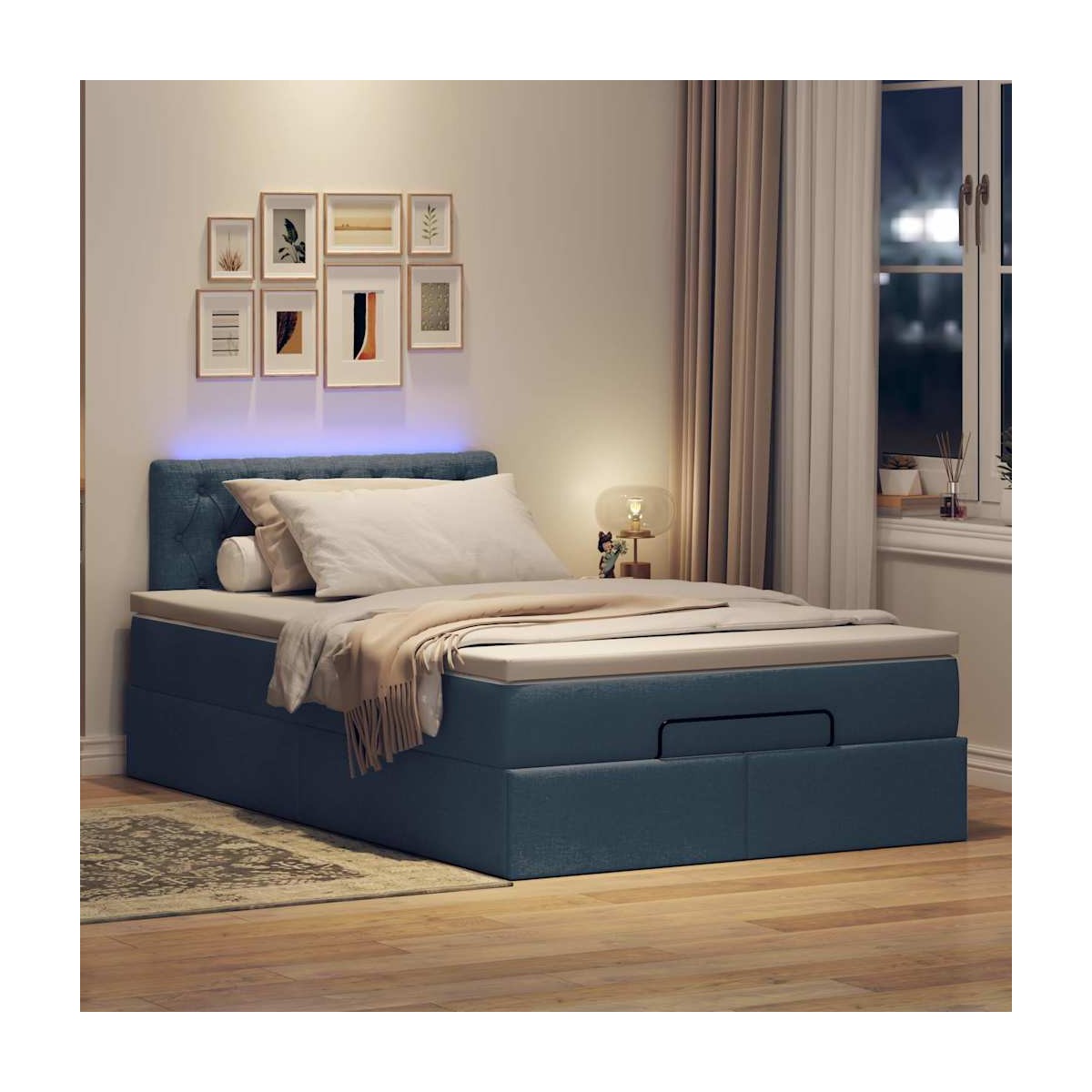 Esta cama otomana combina a la perfección la estética moderna con la funcionalidad práctica, ofreciéndole tanto una solución de almacenamiento como una experiencia de sueño cómoda. Material suave y duradero: La tela de poliéster ofrece una combinación de suavidad, transpirabilidad y durabilidad, lo que garantiza que experimentes la máxima comodidad.Colchón de muelles ensacados: El muelle ensacado individual incorporado es conocido por su altísima calidad, al tiempo que garantiza un alto nivel de durabilidad y adaptabilidad. Puede absorber eficazmente el ruido y los golpes causados por los lanzamientos y los giros.Luces LED para un ambiente agradable: Esta cama cuenta con luces LED que se pueden ajustar fácilmente para crear un espectáculo de luces personalizado. Puedes personalizar los modos, los colores y el brillo para mejorar el ambiente de tu espacio interior.Cubrecolchón cómodo: Este cubrecolchón mejora el soporte y la comodidad con su superficie suave y transpirable al tiempo que prolonga la vida útil de su colchón. Su funda extraíble permite un fácil lavado, lo que facilita el mantenimiento. Información útil:Por razones de higiene, el colchón no puede devolverse si se ha quitado o abierto el embalaje.El producto tiene un conector USB que necesita una fuente de alimentación USB certificada de 45 V (no incluida).Únicamente puedes cortar por la parte con el símbolo de las tijeras y únicamente la parte con el USB seguirá funcionando como antes.