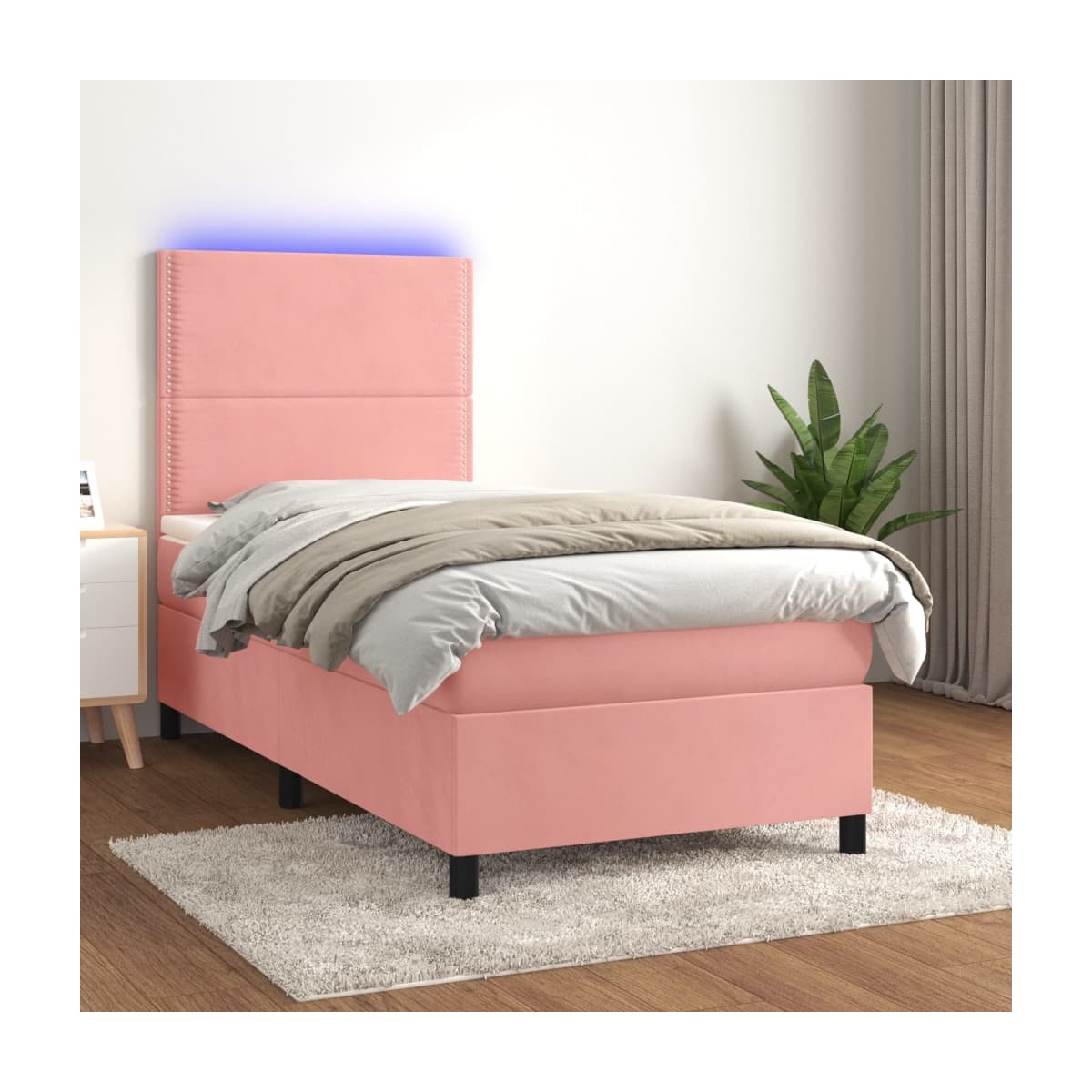 Utiliza esta cama box spring con colchón y LED para disfrutar de un sueño reparador. Es el centro de atención de tu dormitorio. Terciopelo suave: El terciopelo es una tela suave y lujosa, reconocida por su denso pelo de fibras cortadas de forma uniforme que tienen una suave pelusa. La tela de terciopelo posee un característico y suave tacto, lo que hace que sea cómoda al tacto.Cabecero práctico: El cabecero de la cama es ajustable en altura según tus preferencias. El cabecero de la cama te proporciona un excelente apoyo para la espalda mientras estás sentado en la cama para leer o ver la televisión.Tira de LED de colores: Alegra la oscuridad con luces LED de colores.Colchón de muelles ensacados: El muelle ensacado individual incorporado es conocido por su altísima calidad, al tiempo que garantiza un alto nivel de durabilidad y adaptabilidad. Puede absorber eficazmente el ruido y los golpes causados por los lanzamientos y los giros.Protector de colchón respetuoso con la piel: El protector de colchón tiene una funda de tejido resistente y respetuoso con la piel, que lo hace suave y confortable. Nota:Por razones de higiene, el colchón no puede devolverse si se ha quitado o abierto el embalaje.Únicamente puedes cortar por la parte con el símbolo de las tijeras y únicamente la parte con el USB seguirá funcionando como antes.Cada producto viene con un manual de montaje en la caja para facilitar el montaje.El producto tiene un conector USB, pero no se incluye la fuente de alimentación USB de 5 V certificada.