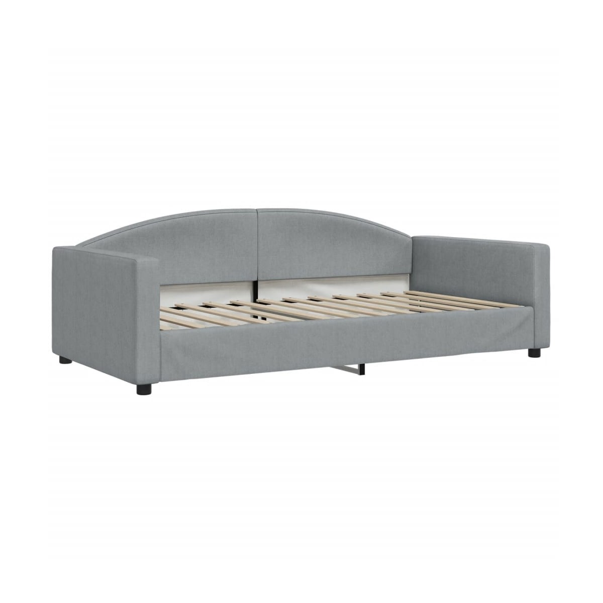 Este sofá cama 2 en 1, que sirve tanto de sofá como de cama, es un complemento práctico y llamativo para el salón o el dormitorio. Sofá cama versátil: El sofá cama puede utilizarse como sofá durante el día o como cama por la noche, para tener una solución rápida para alojar a invitados que pasen la noche.Experiencia confortable: El sofá cama está hecho de tela. La tela posee un aspecto sencillo y limpio, además de ser transpirable y duradera. Asimismo, el respaldo y los reposabrazos de la cama de invitados están acolchados con espuma para mejorar la comodidad.Estructura robusta y estable: La estructura principal del sofá cama está hecha de metal y madera maciza, por lo que es muy resistente y duradero. Estos listones de madera contrachapada permiten una mejor circulación del aire con el fin de mantener el colchón fresco durante más tiempo, además de mejorar la capacidad de peso y garantizar la estabilidad.Diseño moderno: ¡El sofá cama tiene un diseño moderno con líneas nítidas, un aspecto minimalista, así como luz natural, y añadirá un estilo moderno a la casa! Información útil:El colchón no está incluido con la cama. Disponemos de una variada selección de colchones. Puedes echar un vistazo a nuestra tienda para buscar el colchón correspondiente.