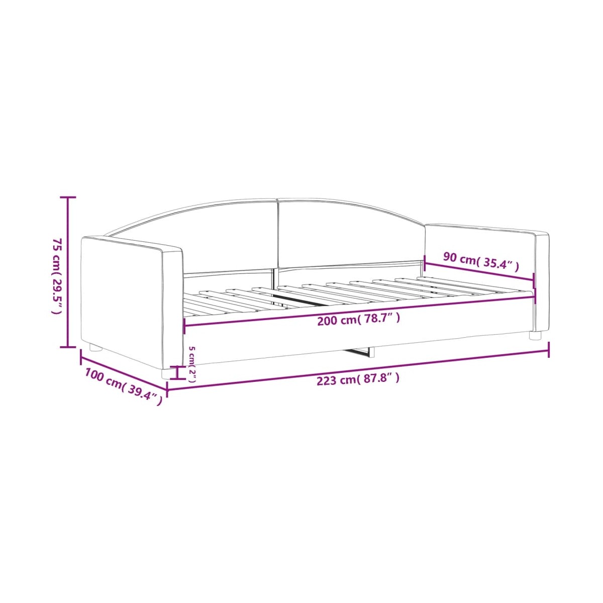 - Dimensiones del asiento: 90 x 200 cm (ancho x largo)