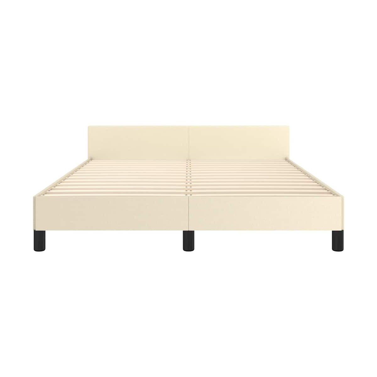 ¡Consigue un sueño más reparador con esta estructura de cama con cabecero! Es un aporte acogedor para cualquier dormitorio. Material duradero: El cuero sintético de primera calidad es un material muy duradero. Es resistente a las manchas, por lo que es fácil de limpiar con un paño húmedo. Además, la superficie lisa da un aspecto lujoso y la belleza del cuero auténtico.Patas de apoyo: La cama se apoya en patas robustas, que garantizan su estabilidad, seguridad y firmeza.Listones robustos: Los listones de madera contrachapada proporcionan una buena distribución del peso, lo que garantiza que el colchón se mantenga en tu sitio con cada giro y vuelta del cuerpo mientras duermes. Nota:La entrega incluye solo una estructura de cama. El colchón no está incluido. Puedes echar un vistazo en nuestra tienda para buscar colchones a juego.Cada producto viene con un manual de montaje en la caja para facilitar el montaje. Información útil:Para ahorrar espacio, algunas piezas o cojines se guardan dentro de los muebles: revise los compartimentos con cierre o debajo de la funda del asiento para ver si hay componentes ocultos.