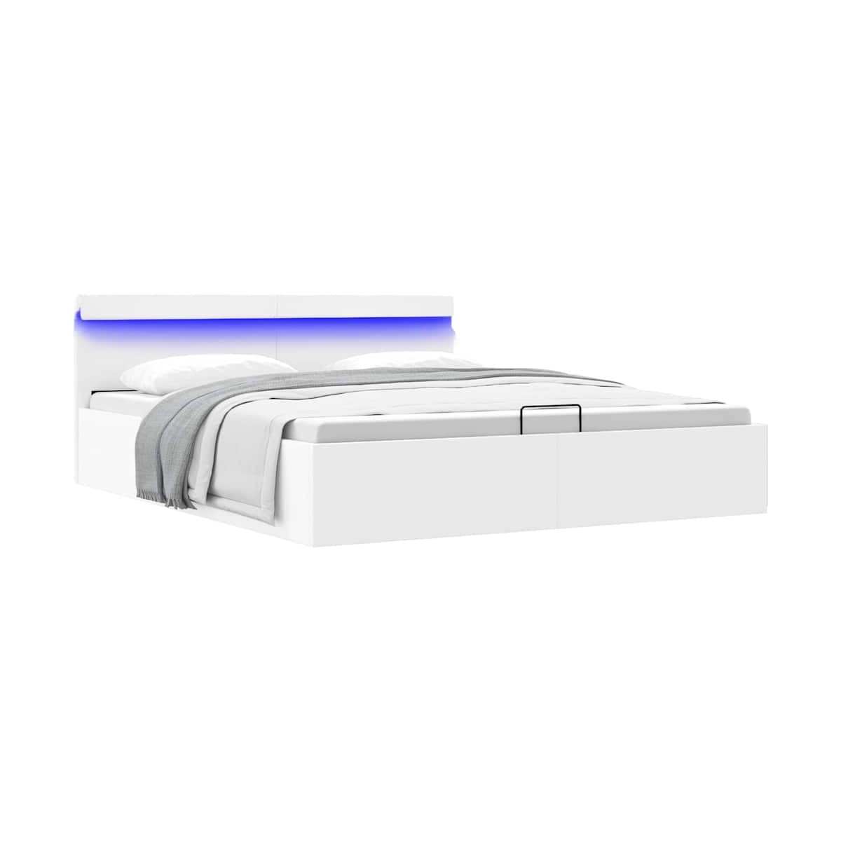 ¡Añade al instante un impresionante toque moderno a tu dormitorio con nuestra estructura de cama hidráulica de cuero sintético! Esta cama de matrimonio se caracteriza por un diseño sencillo pero elegante, así como una estructura maciza ya que está hecha de MDF resistente y robusto. Esta cama tapizada convierte el espacio no utilizado debajo del colchón en espacio de almacenamiento, con un amplio espacio para guardar ropa, sábanas, mantas, etc. El mecanismo hidráulico de elevación de gas hace que levantar el colchón sea muy fácil. El somier permanecerá en posición vertical una vez que lo hayas levantado para que tengas ambas manos libres para retirar o guardar objetos debajo. La estructura de acero con recubrimiento en polvo y los listones de madera contrachapada aumentan la robustez y durabilidad de la cama. Tapizada en cuero sintético brillante, esta cama con almacenaje se ve atractiva y es fácil de mantener. Esta cama es adecuada para un colchón de 160 x 200 cm. Esta cama cuenta con luces LED que se pueden ajustar fácilmente para crear un espectáculo de luces personalizado. Puedes personalizar los modos, los colores y el brillo para mejorar el ambiente de tu espacio interior. El producto se monta fácilmente. Ten en cuenta que la entrega solo incluye la estructura de cama; el colchón no está incluido. Puedes buscar uno apropiado para ella en nuestra tienda. Nota: El producto tiene un conector USB, pero la fuente de alimentación USB de 5V certificada no está incluida.