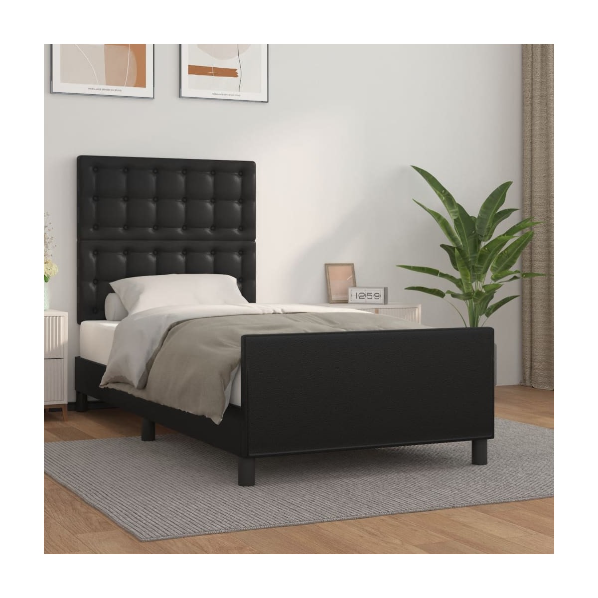 ¡Consigue un sueño más reparador con esta estructura de cama con cabecero! Es un aporte acogedor para cualquier dormitorio. Material duradero: El cuero sintético de primera calidad es un material muy duradero. Es resistente a las manchas, por lo que es fácil de limpiar con un paño húmedo. Además, la superficie lisa da un aspecto lujoso y la belleza del cuero auténtico.Altura regulable: El cabecero de la cama es ajustable en altura según tus preferencias.Patas de apoyo: La cama se apoya en patas robustas, que garantizan su estabilidad, seguridad y firmeza.Listones robustos: Los listones de madera contrachapada proporcionan una buena distribución del peso, lo que garantiza que el colchón se mantenga en tu sitio con cada giro y vuelta del cuerpo mientras duermes.Excelente apoyo: El cabecero de la cama te proporciona un excelente apoyo para la espalda mientras estás sentado en la cama para leer o ver la televisión. Nota:La entrega incluye solo una estructura de cama. El colchón no está incluido. Puedes echar un vistazo en nuestra tienda para buscar colchones a juego.Cada producto viene con un manual de montaje en la caja para facilitar el montaje.