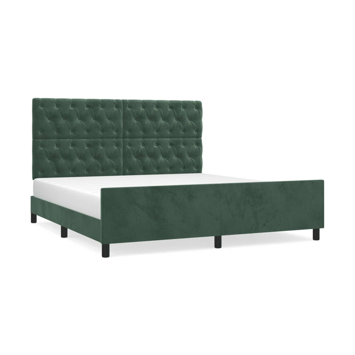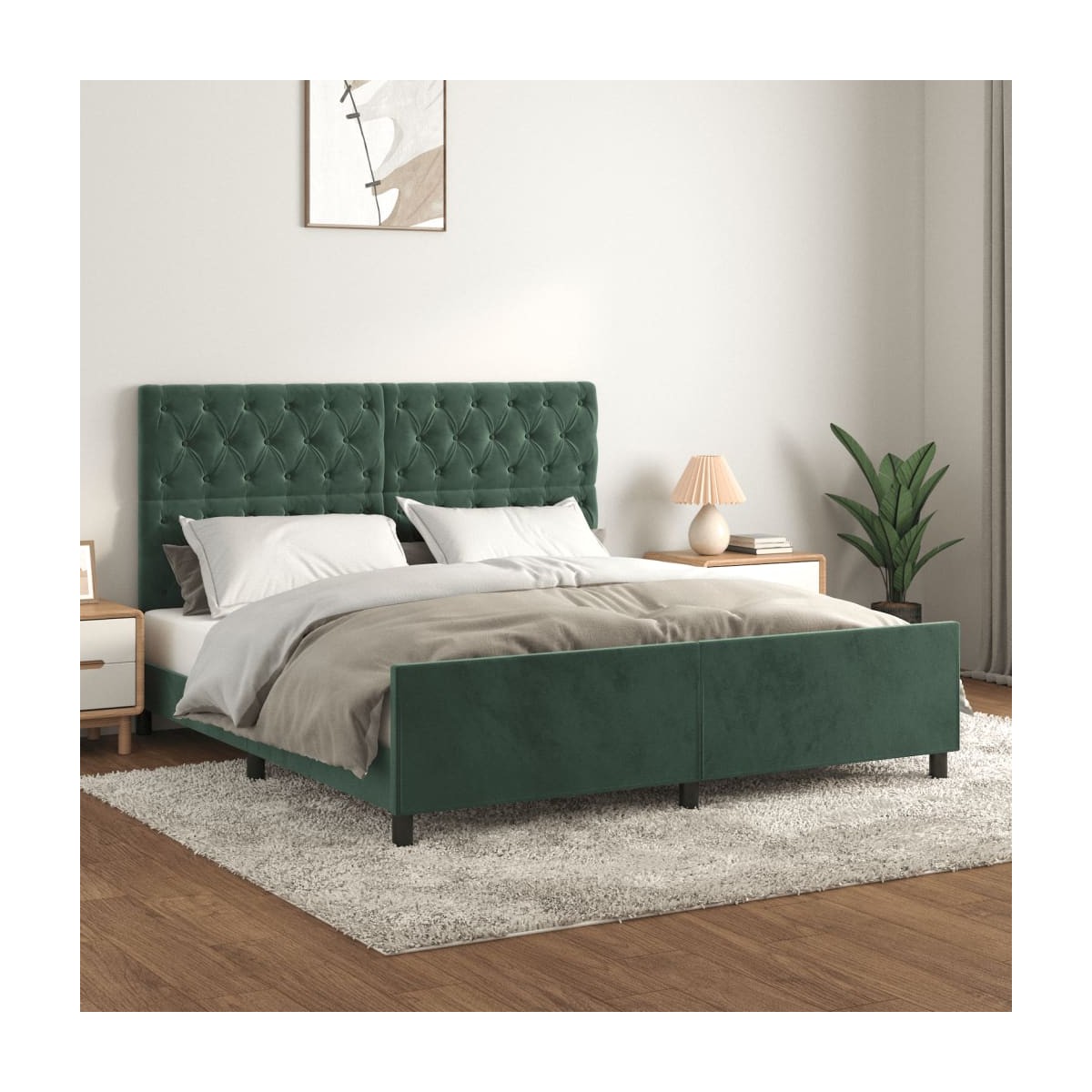 ¡Consigue un sueño más reparador con esta estructura de cama con cabecero! Es un aporte acogedor para cualquier dormitorio. Terciopelo suave: El terciopelo es una tela suave y lujosa, reconocida por su denso pelo de fibras cortadas de forma uniforme que tienen una suave pelusa. La tela de terciopelo posee un característico y suave tacto, lo que hace que sea cómoda al tacto.Altura regulable: El cabecero de la cama es ajustable en altura según tus preferencias.Patas de apoyo: La cama se apoya en patas robustas, que garantizan su estabilidad, seguridad y firmeza.Listones robustos: Los listones de madera contrachapada proporcionan una buena distribución del peso, lo que garantiza que el colchón se mantenga en tu sitio con cada giro y vuelta del cuerpo mientras duermes.Excelente apoyo: El cabecero de la cama te proporciona un excelente apoyo para la espalda mientras estás sentado en la cama para leer o ver la televisión. Nota:La entrega incluye solo una estructura de cama. El colchón no está incluido. Puedes echar un vistazo en nuestra tienda para buscar colchones a juego.Cada producto viene con un manual de montaje en la caja para facilitar el montaje.