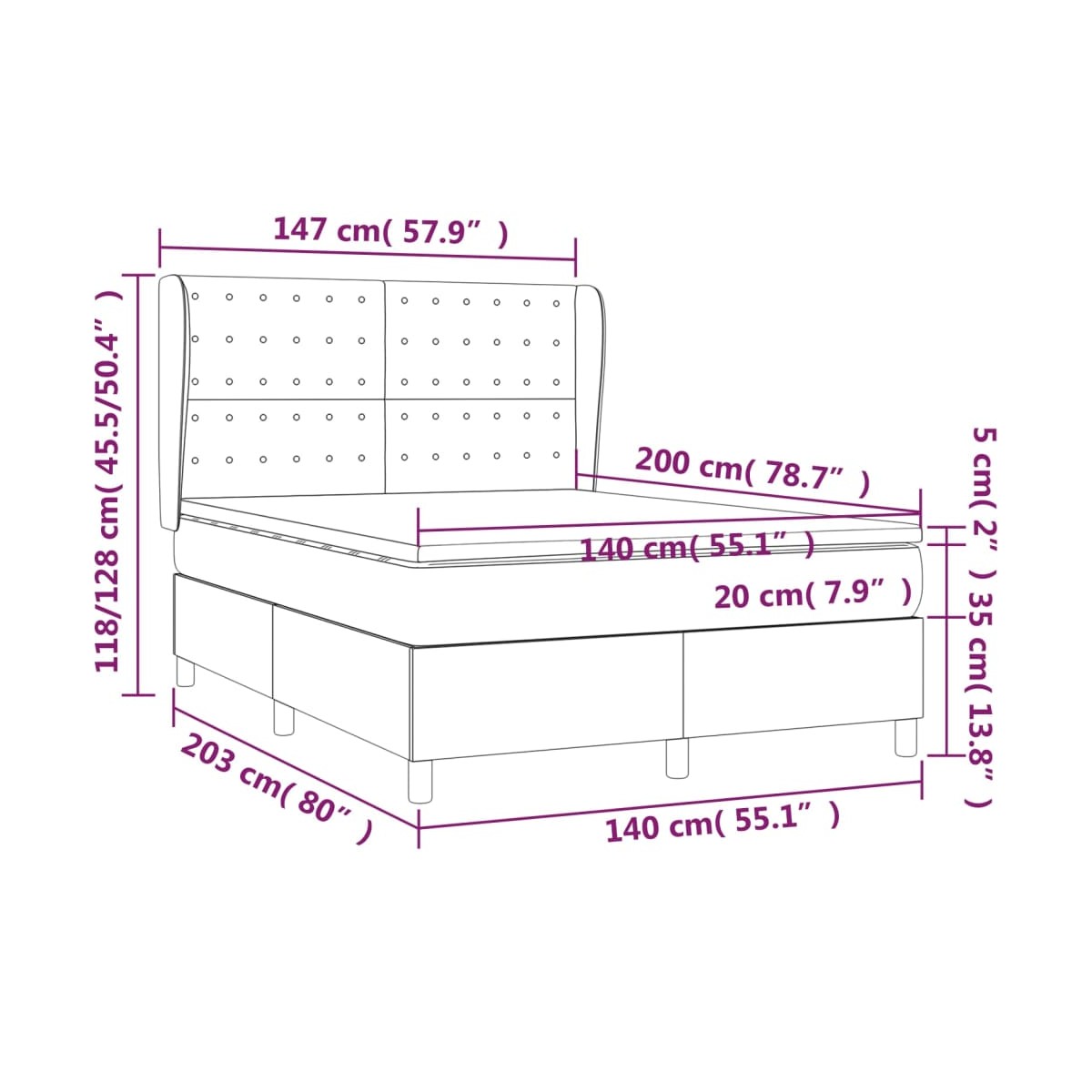 - Dimensiones: 140 x 200 x 20 cm (ancho x largo x alto)