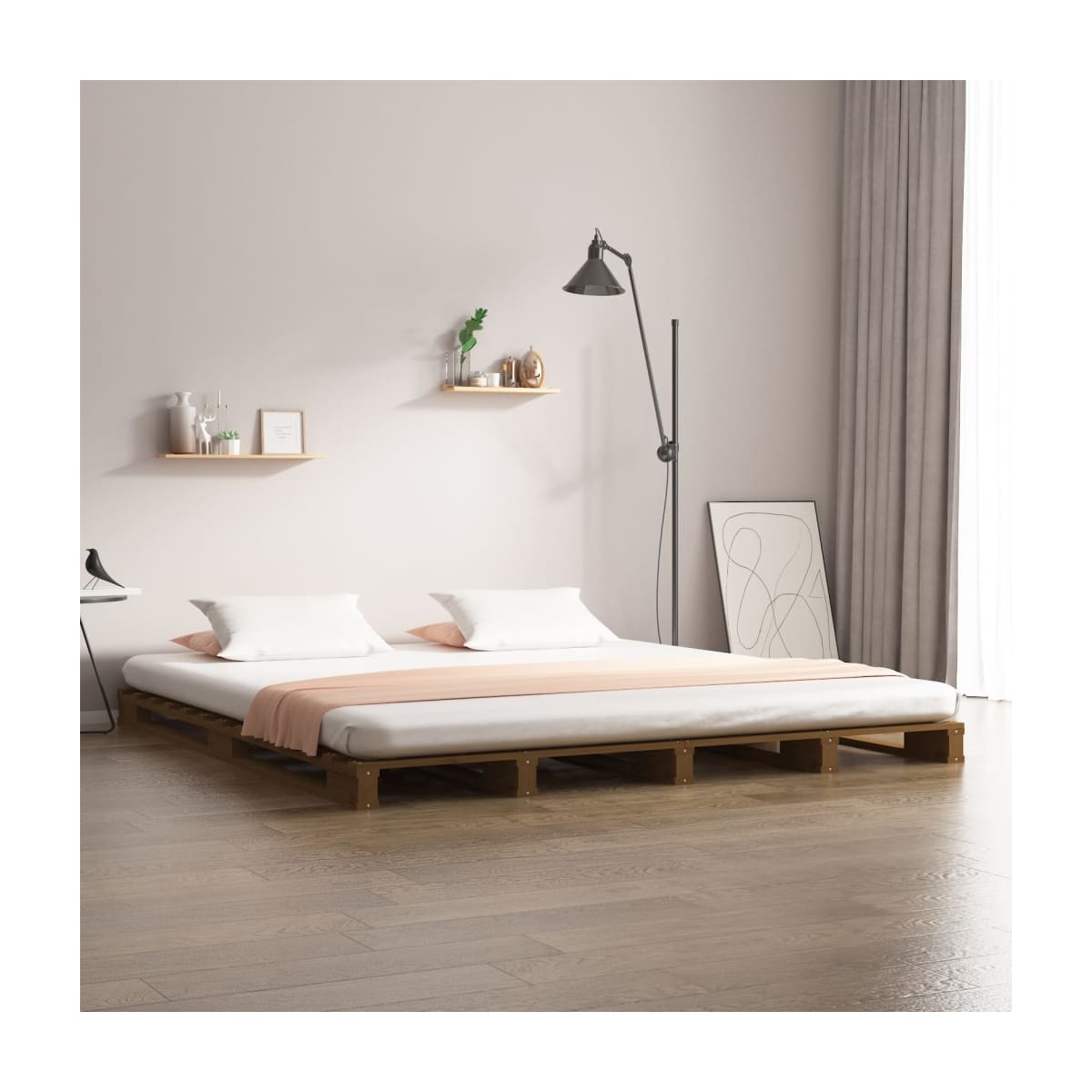 ¡Agrega un toque moderno a tu dormitorio con esta clásica cama de palets de madera! Es un aporte práctico y decorativo para tu decoración. Madera de pino maciza: La madera de pino maciza es un bonito material natural. La madera de pino tiene vetas rectas, y los nudos dan al material su distintivo aspecto rústico.Estructura robusta y estable: La estructura de madera garantiza su solidez y estabilidad.Listones robustos: Los listones de madera contrachapada proporcionan una buena distribución del peso, lo que garantiza que el colchón se mantenga en su sitio con cada giro y vuelta del cuerpo mientras duermes. Nota:La entrega incluye solo una estructura de cama. El colchón no está incluido. Puedes echar un vistazo en nuestra tienda para buscar colchones a juego.Esta estructura de cama es adecuada para un colchón de 140 x 200 cmCada producto viene con un manual de montaje en la caja para facilitar el montaje.