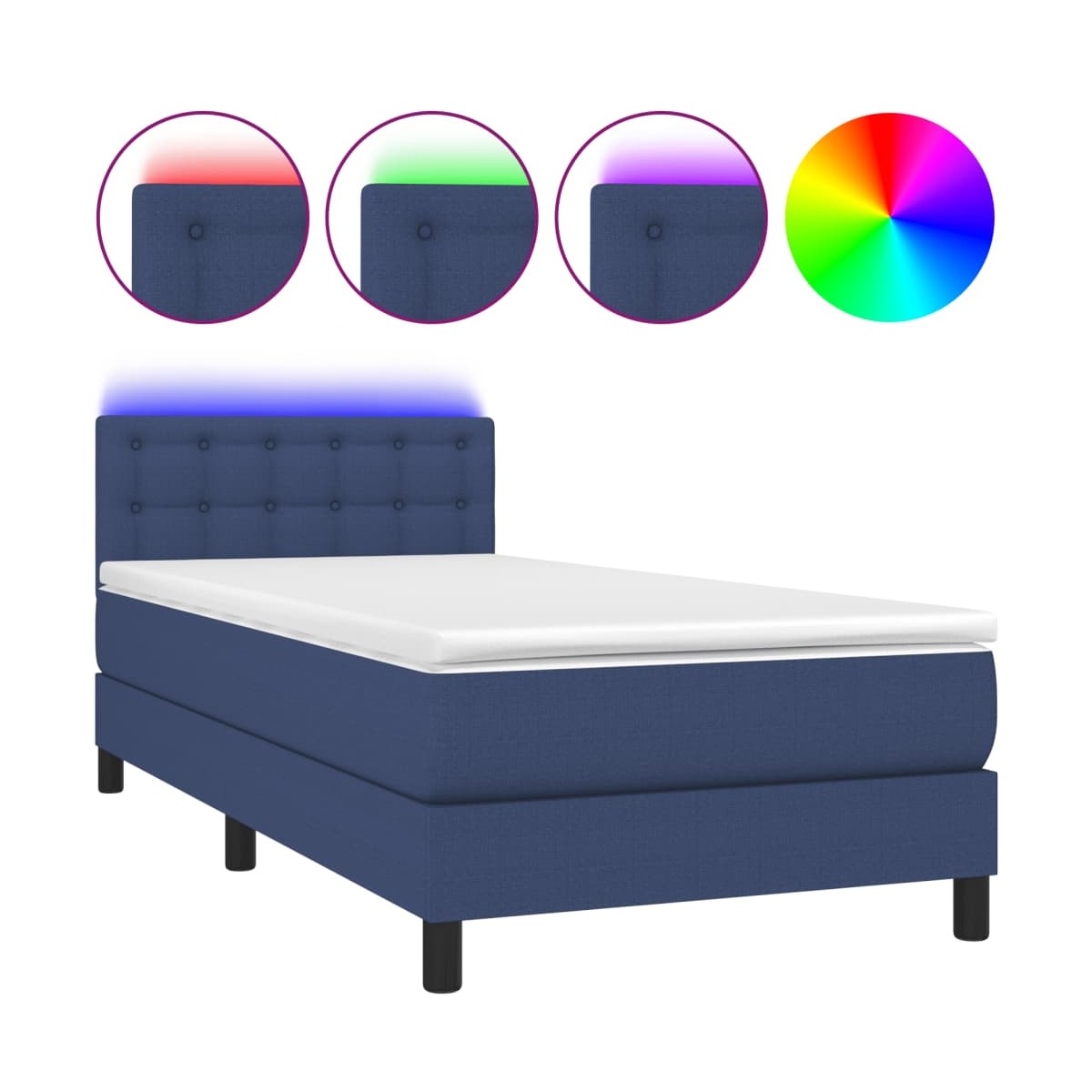 Utiliza esta cama tipo box spring con colchón y luces LED para disfrutar de un sueño reparador. Será el centro de atención del dormitorio. Material de primera calidad: La tela posee un aspecto sencillo y limpio, y es transpirable y duradera.Cabecero práctico: El cabecero de la cama es ajustable en altura según tus preferencias. El cabecero de la cama te proporciona un excelente apoyo para la espalda mientras estás sentado en la cama para leer o ver la televisión.Tira de LED de colores: Alegra la oscuridad con luces LED de colores.Colchón de muelles ensacados: El muelle ensacado individual incorporado es conocido por su altísima calidad, al tiempo que garantiza un alto nivel de durabilidad y adaptabilidad. Puede absorber eficazmente el ruido y los golpes causados por los lanzamientos y los giros.Protector de colchón respetuoso con la piel: El protector de colchón tiene una funda de tejido resistente y respetuoso con la piel, que lo hace suave y confortable. Nota: La lona impermeable no está incluidaPor razones de higiene, el colchón no puede devolverse si se ha quitado o abierto el embalaje.Cada producto viene con un manual de montaje en la caja para facilitar el montaje.Únicamente puedes cortar por la parte con el símbolo de las tijeras y únicamente la parte con el USB seguirá funcionando como antes.El producto tiene un conector USB, pero no se incluye la fuente de alimentación USB de 5 V certificada.