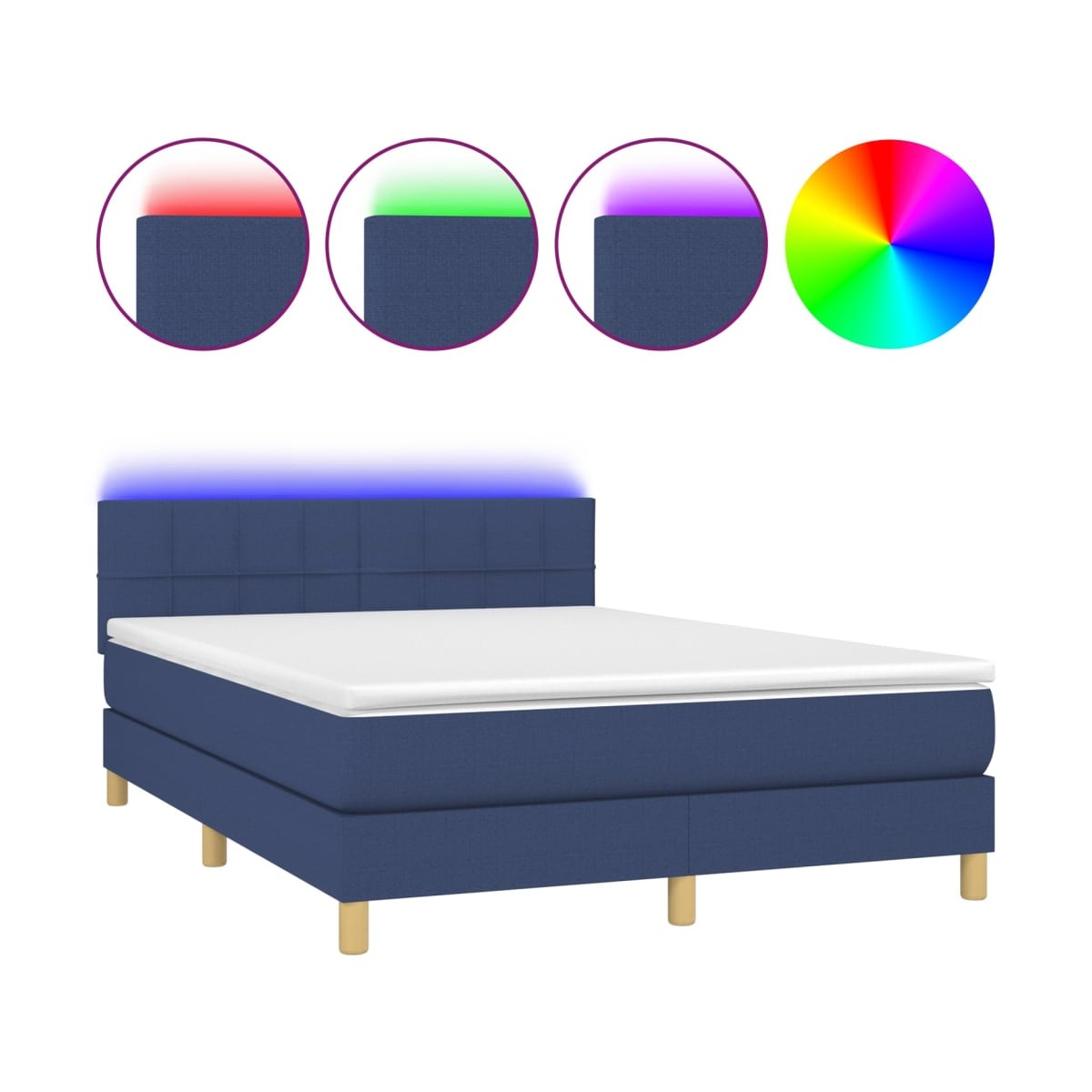 Utiliza esta cama box spring con colchón y LED para disfrutar de un sueño reparador. Es el centro de atención de tu dormitorio. Material de primera calidad: La tela posee un aspecto sencillo y limpio, y es transpirable y duradera.Cabecero práctico: El cabecero de la cama es ajustable en altura según tus preferencias. El cabecero de la cama te proporciona un excelente apoyo para la espalda mientras estás sentado en la cama para leer o ver la televisión.Tira de LED de colores: Alegra la oscuridad con luces LED de colores.Colchón de muelles ensacados: El muelle ensacado individual incorporado es conocido por su altísima calidad, al tiempo que garantiza un alto nivel de durabilidad y adaptabilidad. Puede absorber eficazmente el ruido y los golpes causados por los lanzamientos y los giros.Protector de colchón respetuoso con la piel: El protector de colchón tiene una funda de tejido resistente y respetuoso con la piel, que lo hace suave y confortable. Nota:Por razones de higiene, el colchón no puede devolverse si se ha quitado o abierto el embalaje.Cada producto viene con un manual de montaje en la caja para facilitar el montaje.Únicamente puedes cortar por la parte con el símbolo de las tijeras y únicamente la parte con el USB seguirá funcionando como antes.El producto tiene un conector USB, pero no se incluye la fuente de alimentación USB de 5 V certificada.
