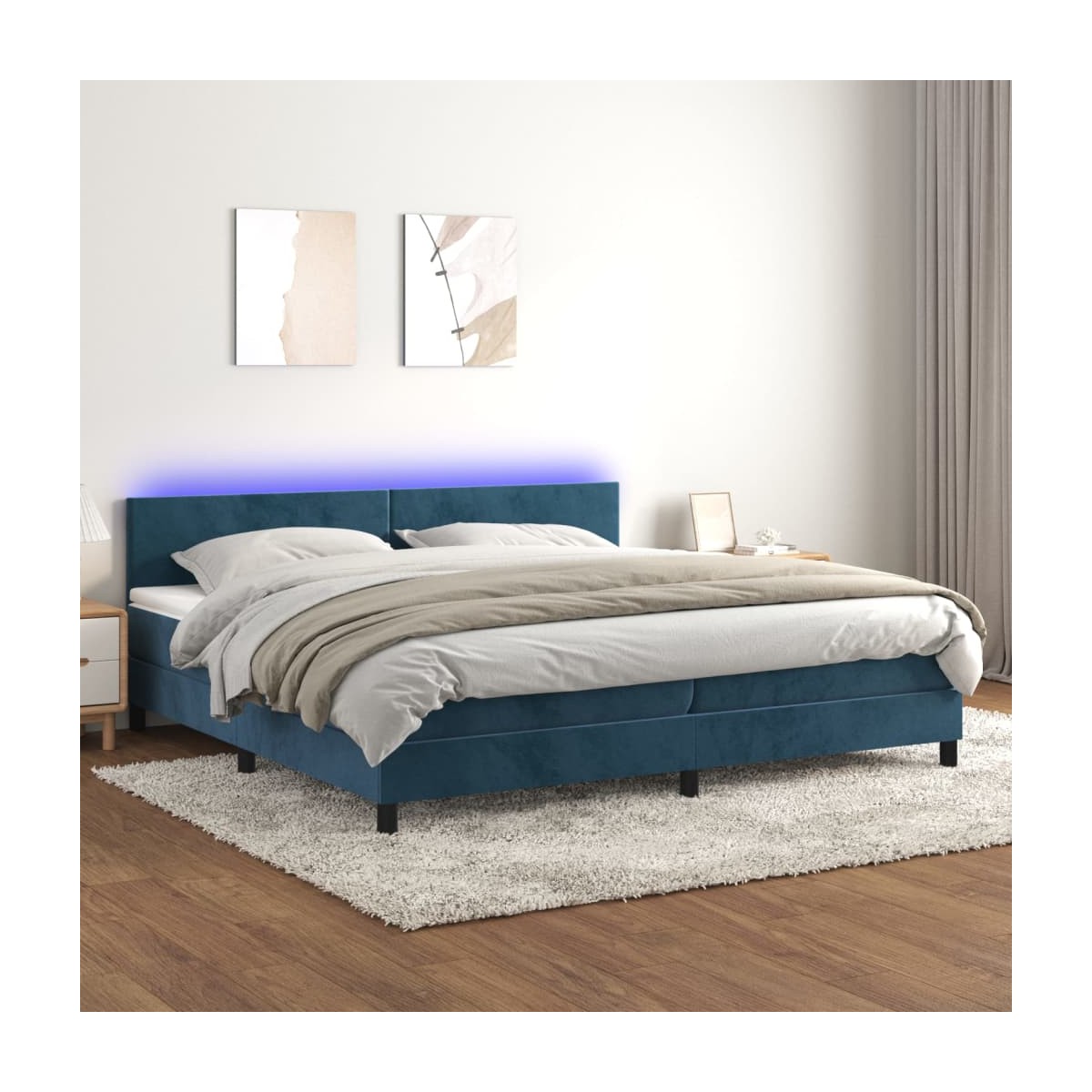 Utiliza esta cama box spring con colchón y LED para disfrutar de un sueño reparador. Es el centro de atención de tu dormitorio. Terciopelo suave: El terciopelo es una tela suave y lujosa, reconocida por su denso pelo de fibras cortadas de forma uniforme que tienen una suave pelusa. La tela de terciopelo posee un característico y suave tacto, lo que hace que sea cómoda al tacto.Cabecero práctico: El cabecero de la cama es ajustable en altura según tus preferencias. El cabecero de la cama te proporciona un excelente apoyo para la espalda mientras estás sentado en la cama para leer o ver la televisión.Tira de LED de colores: Alegra la oscuridad con luces LED de colores.Colchón de muelles ensacados: El muelle ensacado individual incorporado es conocido por su altísima calidad, al tiempo que garantiza un alto nivel de durabilidad y adaptabilidad. Puede absorber eficazmente el ruido y los golpes causados por los lanzamientos y los giros.Protector de colchón respetuoso con la piel: El protector de colchón tiene una funda de tejido resistente y respetuoso con la piel, que lo hace suave y confortable. Nota:Por razones de higiene, el colchón no puede devolverse si se ha quitado o abierto el embalaje.Cada producto viene con un manual de montaje en la caja para facilitar el montaje.Únicamente puedes cortar por la parte con el símbolo de las tijeras y únicamente la parte con el USB seguirá funcionando como antes.El producto tiene un conector USB, pero no se incluye la fuente de alimentación USB de 5 V certificada.