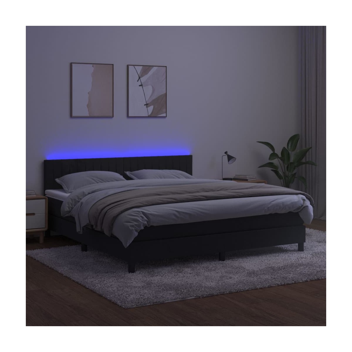 Utiliza esta cama box spring con colchón y LED para disfrutar de un sueño reparador. Es el centro de atención de tu dormitorio. Terciopelo suave: El terciopelo es una tela suave y lujosa, reconocida por su denso pelo de fibras cortadas de forma uniforme que tienen una suave pelusa. La tela de terciopelo posee un característico y suave tacto, lo que hace que sea cómoda al tacto.Cabecero práctico: El cabecero de la cama es ajustable en altura según tus preferencias. El cabecero de la cama te proporciona un excelente apoyo para la espalda mientras estás sentado en la cama para leer o ver la televisión.Tira de LED de colores: Alegra la oscuridad con luces LED de colores.Colchón de muelles ensacados: El muelle ensacado individual incorporado es conocido por su altísima calidad, al tiempo que garantiza un alto nivel de durabilidad y adaptabilidad. Puede absorber eficazmente el ruido y los golpes causados por los lanzamientos y los giros.Protector de colchón respetuoso con la piel: El protector de colchón tiene una funda de tejido resistente y respetuoso con la piel, que lo hace suave y confortable. Nota:Por razones de higiene, el colchón no puede devolverse si se ha quitado o abierto el embalaje.Cada producto viene con un manual de montaje en la caja para facilitar el montaje.Únicamente puedes cortar por la parte con el símbolo de las tijeras y únicamente la parte con el USB seguirá funcionando como antes.El producto tiene un conector USB, pero no se incluye la fuente de alimentación USB de 5 V certificada.