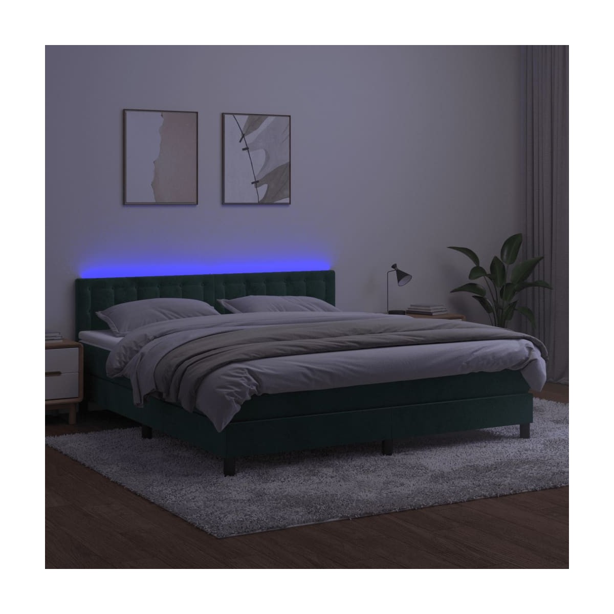 Utiliza esta cama box spring con colchón y LED para disfrutar de un sueño reparador. Es el centro de atención de tu dormitorio. Terciopelo suave: El terciopelo es una tela suave y lujosa, reconocida por su denso pelo de fibras cortadas de forma uniforme que tienen una suave pelusa. La tela de terciopelo posee un característico y suave tacto, lo que hace que sea cómoda al tacto.Cabecero práctico: El cabecero de la cama es ajustable en altura según tus preferencias. El cabecero de la cama te proporciona un excelente apoyo para la espalda mientras estás sentado en la cama para leer o ver la televisión.Tira de LED de colores: Alegra la oscuridad con luces LED de colores.Colchón de muelles ensacados: El muelle ensacado individual incorporado es conocido por su altísima calidad, al tiempo que garantiza un alto nivel de durabilidad y adaptabilidad. Puede absorber eficazmente el ruido y los golpes causados por los lanzamientos y los giros.Protector de colchón respetuoso con la piel: El protector de colchón tiene una funda de tejido resistente y respetuoso con la piel, que lo hace suave y confortable. Nota:Por razones de higiene, el colchón no puede devolverse si se ha quitado o abierto el embalaje.Cada producto viene con un manual de montaje en la caja para facilitar el montaje.Únicamente puedes cortar por la parte con el símbolo de las tijeras y únicamente la parte con el USB seguirá funcionando como antes.El producto tiene un conector USB, pero no se incluye la fuente de alimentación USB de 5 V certificada.