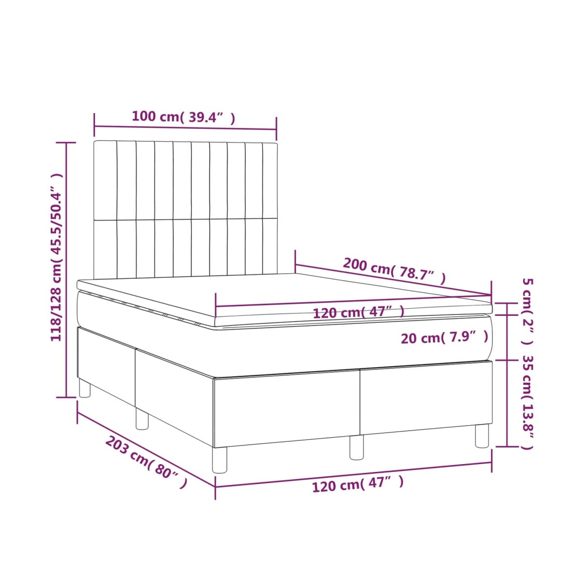 Utiliza esta cama box spring con colchón y LED para disfrutar de un sueño reparador. Es el centro de atención de tu dormitorio. Material de primera calidad: La tela posee un aspecto sencillo y limpio, y es transpirable y duradera.Cabecero práctico: El cabecero de la cama es ajustable en altura según tus preferencias. El cabecero de la cama te proporciona un excelente apoyo para la espalda mientras estás sentado en la cama para leer o ver la televisión.Tira de LED de colores: Alegra la oscuridad con luces LED de colores.Colchón de muelles ensacados: El muelle ensacado individual incorporado es conocido por su altísima calidad, al tiempo que garantiza un alto nivel de durabilidad y adaptabilidad. Puede absorber eficazmente el ruido y los golpes causados por los lanzamientos y los giros.Protector de colchón respetuoso con la piel: El protector de colchón tiene una funda de tejido resistente y respetuoso con la piel, que lo hace suave y confortable. Nota:Por razones de higiene, el colchón no puede devolverse si se ha quitado o abierto el embalaje.Únicamente puedes cortar por la parte con el símbolo de las tijeras y únicamente la parte con el USB seguirá funcionando como antes.Cada producto viene con un manual de montaje en la caja para facilitar el montaje.El producto tiene un conector USB, pero no se incluye la fuente de alimentación USB de 5 V certificada.
