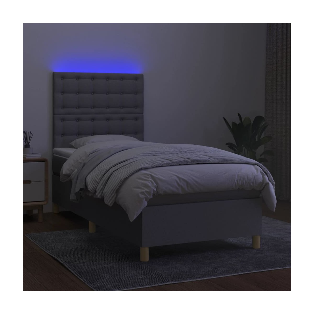 Utiliza esta cama box spring con colchón y LED para disfrutar de un sueño reparador. Es el centro de atención de tu dormitorio. Material de primera calidad: La tela posee un aspecto sencillo y limpio, y es transpirable y duradera.Cabecero práctico: El cabecero de la cama es ajustable en altura según tus preferencias. El cabecero de la cama te proporciona un excelente apoyo para la espalda mientras estás sentado en la cama para leer o ver la televisión.Tira de LED de colores: Alegra la oscuridad con luces LED de colores.Colchón de muelles ensacados: El muelle ensacado individual incorporado es conocido por su altísima calidad, al tiempo que garantiza un alto nivel de durabilidad y adaptabilidad. Puede absorber eficazmente el ruido y los golpes causados por los lanzamientos y los giros.Protector de colchón respetuoso con la piel: El protector de colchón tiene una funda de tejido resistente y respetuoso con la piel, que lo hace suave y confortable. Nota:Por razones de higiene, el colchón no puede devolverse si se ha quitado o abierto el embalaje.Únicamente puedes cortar por la parte con el símbolo de las tijeras y únicamente la parte con el USB seguirá funcionando como antes.Cada producto viene con un manual de montaje en la caja para facilitar el montaje.El producto tiene un conector USB, pero no se incluye la fuente de alimentación USB de 5 V certificada.