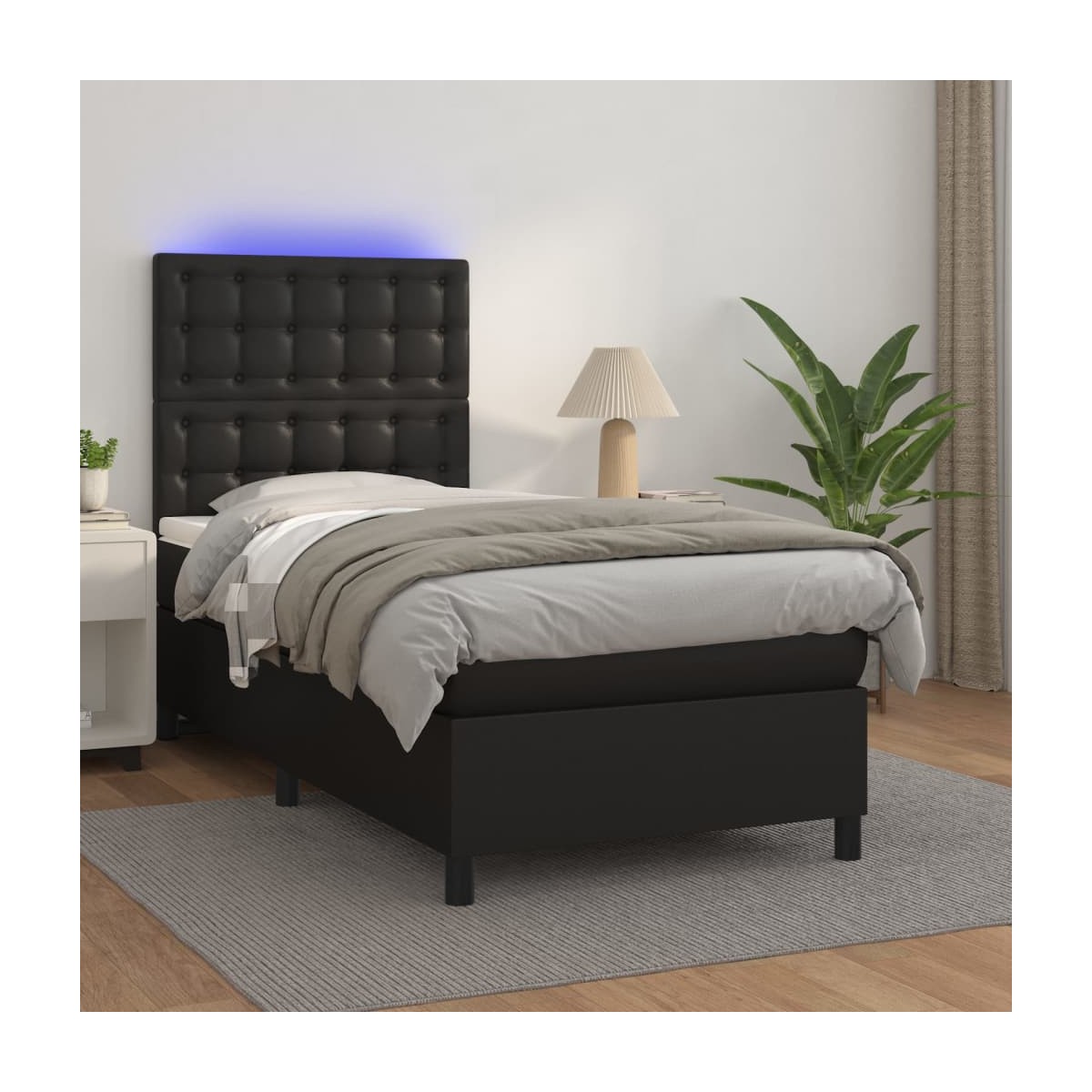 Utiliza esta cama box spring con colchón y LED para disfrutar de un sueño reparador. Es el centro de atención de tu dormitorio. Material duradero: El cuero sintético de primera calidad es un material muy duradero. Es resistente a las manchas, por lo que es fácil de limpiar con un paño húmedo. Además, la superficie lisa da un aspecto lujoso y la belleza del cuero auténtico.Cabecero práctico: El cabecero de la cama es ajustable en altura según tus preferencias. El cabecero de la cama te proporciona un excelente apoyo para la espalda mientras estás sentado en la cama para leer o ver la televisión.Tira de LED de colores: Alegra la oscuridad con luces LED de colores.Colchón de muelles ensacados: El muelle ensacado individual incorporado es conocido por su altísima calidad, al tiempo que garantiza un alto nivel de durabilidad y adaptabilidad. Puede absorber eficazmente el ruido y los golpes causados por los lanzamientos y los giros.Protector de colchón respetuoso con la piel: El protector de colchón tiene una funda de tejido resistente y respetuoso con la piel, que lo hace suave y confortable. Nota:Por razones de higiene, el colchón no puede devolverse si se ha quitado o abierto el embalaje.Únicamente puedes cortar por la parte con el símbolo de las tijeras y únicamente la parte con el USB seguirá funcionando como antes.Cada producto viene con un manual de montaje en la caja para facilitar el montaje.El producto tiene un conector USB, pero no se incluye la fuente de alimentación USB de 5 V certificada.