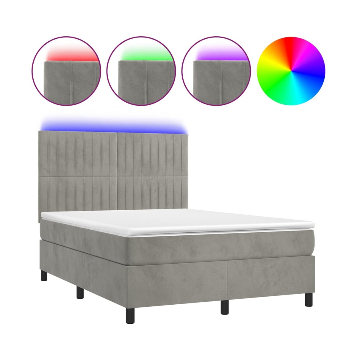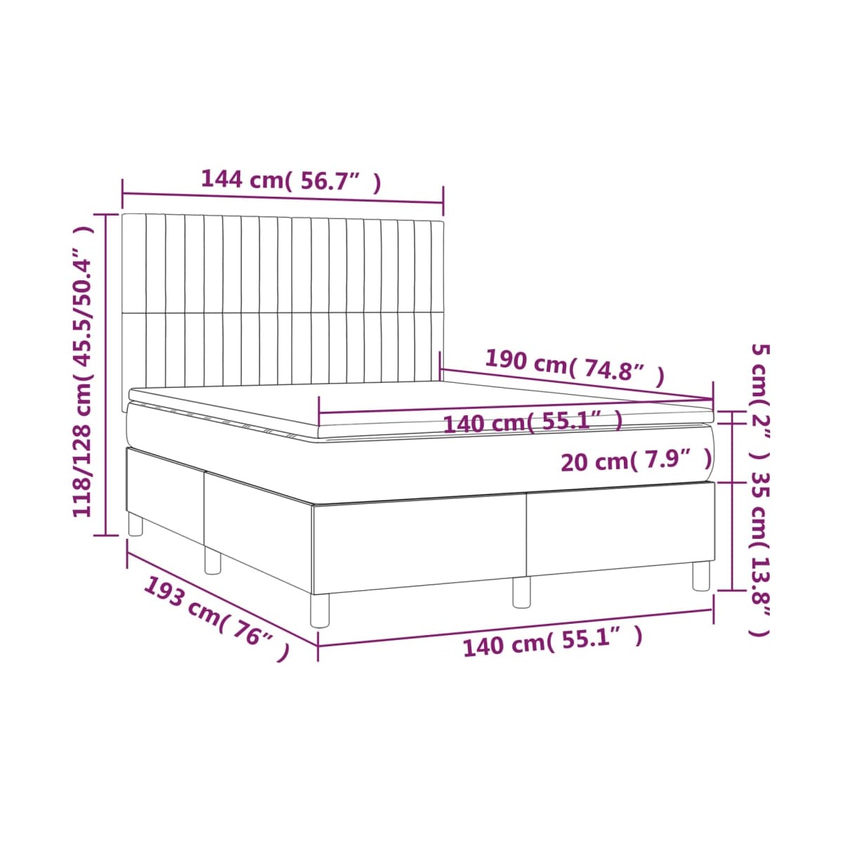 Utiliza esta cama box spring con colchón y LED para disfrutar de un sueño reparador. Es el centro de atención de tu dormitorio. Terciopelo suave: El terciopelo es una tela suave y lujosa, reconocida por su denso pelo de fibras cortadas de forma uniforme que tienen una suave pelusa. La tela de terciopelo posee un característico y suave tacto, lo que hace que sea cómoda al tacto.Cabecero práctico: El cabecero de la cama es ajustable en altura según tus preferencias. El cabecero de la cama te proporciona un excelente apoyo para la espalda mientras estás sentado en la cama para leer o ver la televisión.Tira de LED de colores: Alegra la oscuridad con luces LED de colores.Colchón de muelles ensacados: El muelle ensacado individual incorporado es conocido por su altísima calidad, al tiempo que garantiza un alto nivel de durabilidad y adaptabilidad. Puede absorber eficazmente el ruido y los golpes causados por los lanzamientos y los giros.Protector de colchón respetuoso con la piel: El protector de colchón tiene una funda de tejido resistente y respetuoso con la piel, que lo hace suave y confortable. Nota:Por razones de higiene, el colchón no puede devolverse si se ha quitado o abierto el embalaje.Únicamente puedes cortar por la parte con el símbolo de las tijeras y únicamente la parte con el USB seguirá funcionando como antes.Cada producto viene con un manual de montaje en la caja para facilitar el montaje.El producto tiene un conector USB, pero no se incluye la fuente de alimentación USB de 5 V certificada.