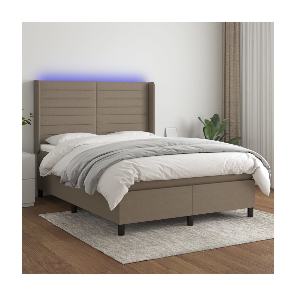 Utiliza esta cama tipo box spring con colchón y luces LED para disfrutar de un sueño reparador. Será el centro de atención del dormitorio. Material de primera calidad: La tela posee un aspecto sencillo y limpio, y es transpirable y duradera.Cabecero práctico: El cabecero de la cama es ajustable en altura según tus preferencias. El cabecero de la cama te proporciona un excelente apoyo para la espalda mientras estás sentado en la cama para leer o ver la televisión.Tira de LED de colores: Alegra la oscuridad con luces LED de colores.Colchón de muelles ensacados: El muelle ensacado individual incorporado es conocido por su altísima calidad, al tiempo que garantiza un alto nivel de durabilidad y adaptabilidad. Puede absorber eficazmente el ruido y los golpes causados por los lanzamientos y los giros.Protector de colchón respetuoso con la piel: El protector de colchón tiene una funda de tejido resistente y respetuoso con la piel, que lo hace suave y confortable. Nota: La lona impermeable no está incluidaPor razones de higiene, el colchón no puede devolverse si se ha quitado o abierto el embalaje.Únicamente puedes cortar por la parte con el símbolo de las tijeras y únicamente la parte con el USB seguirá funcionando como antes.Cada producto viene con un manual de montaje en la caja para facilitar el montaje.El producto tiene un conector USB, pero no se incluye la fuente de alimentación USB de 5 V certificada.