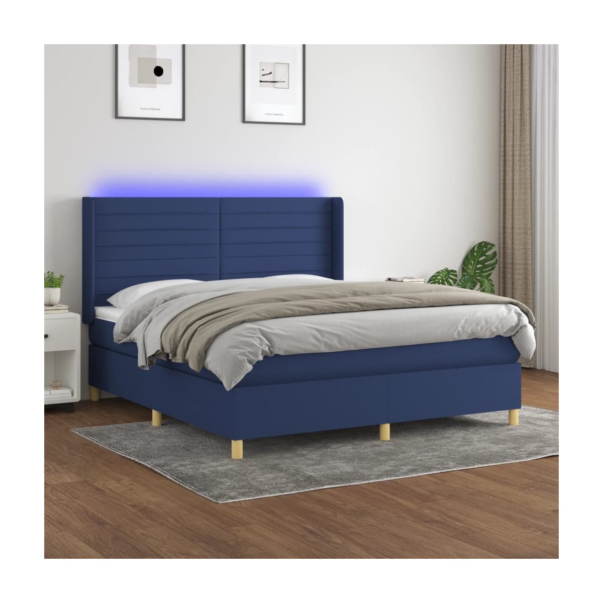 Utiliza esta cama tipo box spring con colchón y luces LED para disfrutar de un sueño reparador. Será el centro de atención del dormitorio. Material de primera calidad: La tela posee un aspecto sencillo y limpio, y es transpirable y duradera.Cabecero práctico: El cabecero de la cama es ajustable en altura según tus preferencias. El cabecero de la cama te proporciona un excelente apoyo para la espalda mientras estás sentado en la cama para leer o ver la televisión.Tira de LED de colores: Alegra la oscuridad con luces LED de colores.Colchón de muelles ensacados: El muelle ensacado individual incorporado es conocido por su altísima calidad, al tiempo que garantiza un alto nivel de durabilidad y adaptabilidad. Puede absorber eficazmente el ruido y los golpes causados por los lanzamientos y los giros.Protector de colchón respetuoso con la piel: El protector de colchón tiene una funda de tejido resistente y respetuoso con la piel, que lo hace suave y confortable. Nota:Por razones de higiene, el colchón no puede devolverse si se ha quitado o abierto el embalaje.Únicamente puedes cortar por la parte con el símbolo de las tijeras y únicamente la parte con el USB seguirá funcionando como antes.Cada producto viene con un manual de montaje en la caja para facilitar el montaje.El producto tiene un conector USB, pero no se incluye la fuente de alimentación USB de 5 V certificada.