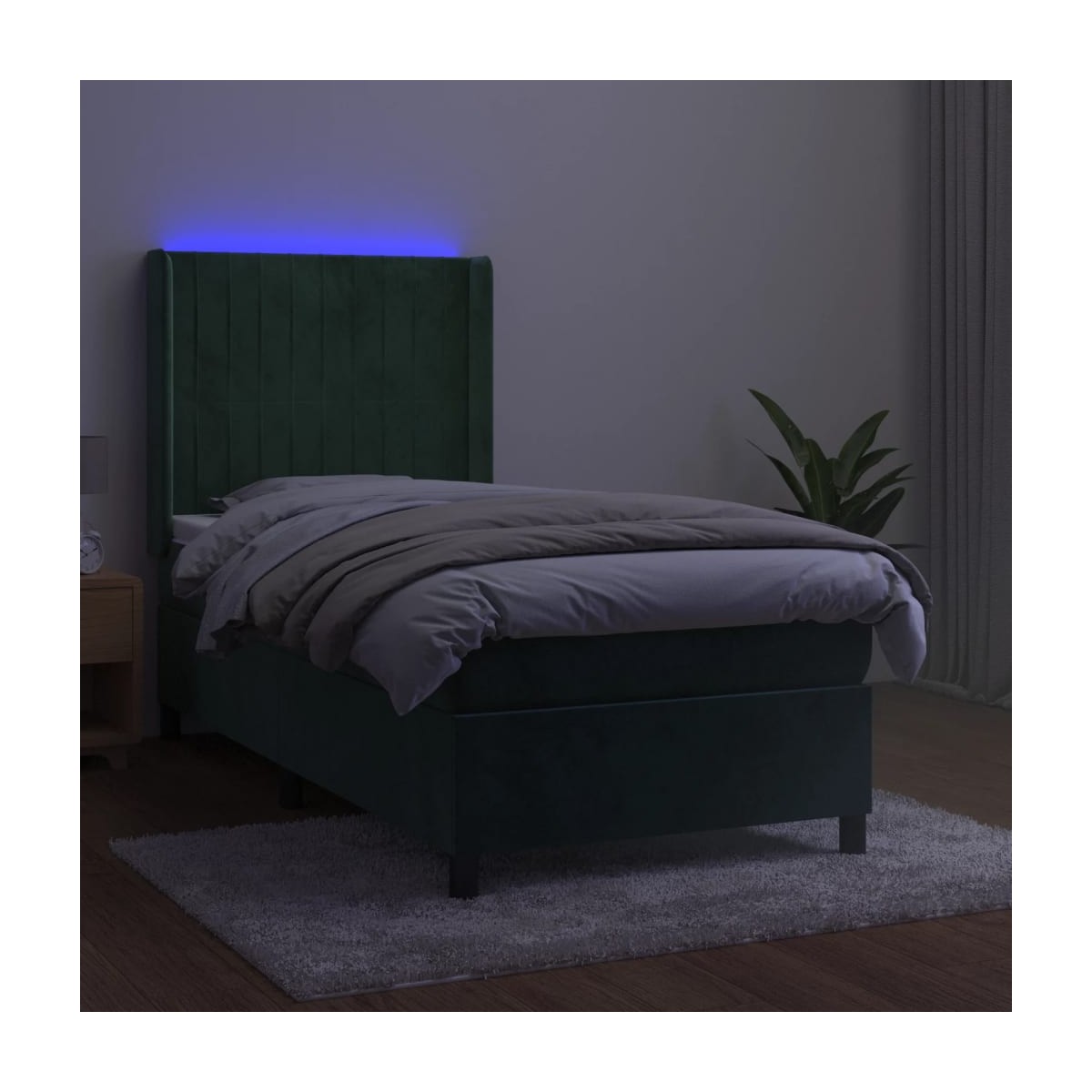 Utiliza esta cama box spring con colchón y LED para disfrutar de un sueño reparador. Es el centro de atención de tu dormitorio. Terciopelo suave: El terciopelo es una tela suave y lujosa, reconocida por su denso pelo de fibras cortadas de forma uniforme que tienen una suave pelusa. La tela de terciopelo posee un característico y suave tacto, lo que hace que sea cómoda al tacto.Cabecero práctico: El cabecero de la cama es ajustable en altura según tus preferencias. El cabecero de la cama te proporciona un excelente apoyo para la espalda mientras estás sentado en la cama para leer o ver la televisión.Tira de LED de colores: Alegra la oscuridad con luces LED de colores.Colchón de muelles ensacados: El muelle ensacado individual incorporado es conocido por su altísima calidad, al tiempo que garantiza un alto nivel de durabilidad y adaptabilidad. Puede absorber eficazmente el ruido y los golpes causados por los lanzamientos y los giros.Protector de colchón respetuoso con la piel: El protector de colchón tiene una funda de tejido resistente y respetuoso con la piel, que lo hace suave y confortable. Nota:Por razones de higiene, el colchón no puede devolverse si se ha quitado o abierto el embalaje.Únicamente puedes cortar por la parte con el símbolo de las tijeras y únicamente la parte con el USB seguirá funcionando como antes.Cada producto viene con un manual de montaje en la caja para facilitar el montaje.El producto tiene un conector USB, pero no se incluye la fuente de alimentación USB de 5 V certificada.
