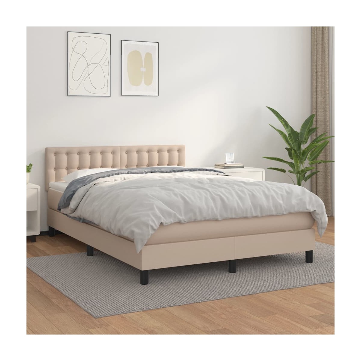Utiliza esta cama de muelles para disfrutar de un sueño reparador. Te ofrece la máxima relajación y un sueño placentero. Material duradero: El cuero sintético de primera calidad es un material muy duradero. Es resistente a las manchas, por lo que es fácil de limpiar con un paño húmedo. Además, la superficie lisa da un aspecto lujoso y la belleza del cuero auténtico.Cabecero práctico: El cabecero de la cama es ajustable en altura según tus preferencias. El cabecero de la cama te proporciona un excelente apoyo para la espalda mientras estás sentado en la cama para leer o ver la televisión.Colchón de muelles ensacados: El muelle ensacado individual incorporado es conocido por su altísima calidad, al tiempo que garantiza un alto nivel de durabilidad y adaptabilidad. Puede absorber eficazmente el ruido y los golpes causados por los lanzamientos y los giros.Soporte de dureza media: El colchón de la cama proporciona perfectamente una mayor estabilidad y el nivel justo de firmeza sin sacrificar la comodidad. Por tanto, es ideal para quienes duermen de espaldas o boca abajo.Protector de colchón respetuoso con la piel: El protector de colchón tiene una funda de tejido resistente y respetuoso con la piel, que lo hace suave y confortable. Nota:Por razones de higiene, el colchón no puede devolverse si se ha quitado o abierto el embalaje.Cada producto viene con un manual de montaje en la caja para facilitar el montaje.