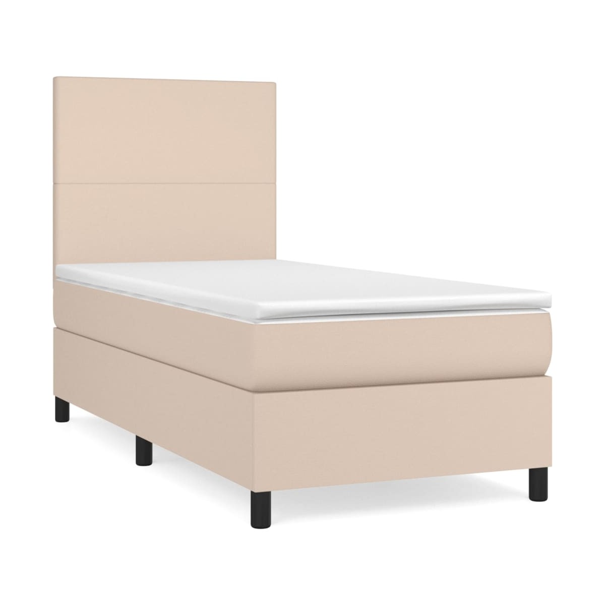 Utiliza esta cama de muelles para disfrutar de un sueño reparador. Te ofrece la máxima relajación y un sueño placentero. Material duradero: El cuero sintético de primera calidad es un material muy duradero. Es resistente a las manchas, por lo que es fácil de limpiar con un paño húmedo. Además, la superficie lisa da un aspecto lujoso y la belleza del cuero auténtico.Cabecero práctico: El cabecero de la cama es ajustable en altura según tus preferencias. El cabecero de la cama te proporciona un excelente apoyo para la espalda mientras estás sentado en la cama para leer o ver la televisión.Colchón de muelles ensacados: El muelle ensacado individual incorporado es conocido por su altísima calidad, al tiempo que garantiza un alto nivel de durabilidad y adaptabilidad. Puede absorber eficazmente el ruido y los golpes causados por los lanzamientos y los giros.Soporte de dureza media: El colchón de la cama proporciona perfectamente una mayor estabilidad y el nivel justo de firmeza sin sacrificar la comodidad. Por tanto, es ideal para quienes duermen de espaldas o boca abajo.Protector de colchón respetuoso con la piel: El protector de colchón tiene una funda de tejido resistente y respetuoso con la piel, que lo hace suave y confortable. Nota:Por razones de higiene, el colchón no puede devolverse si se ha quitado o abierto el embalaje.Cada producto viene con un manual de montaje en la caja para facilitar el montaje.
