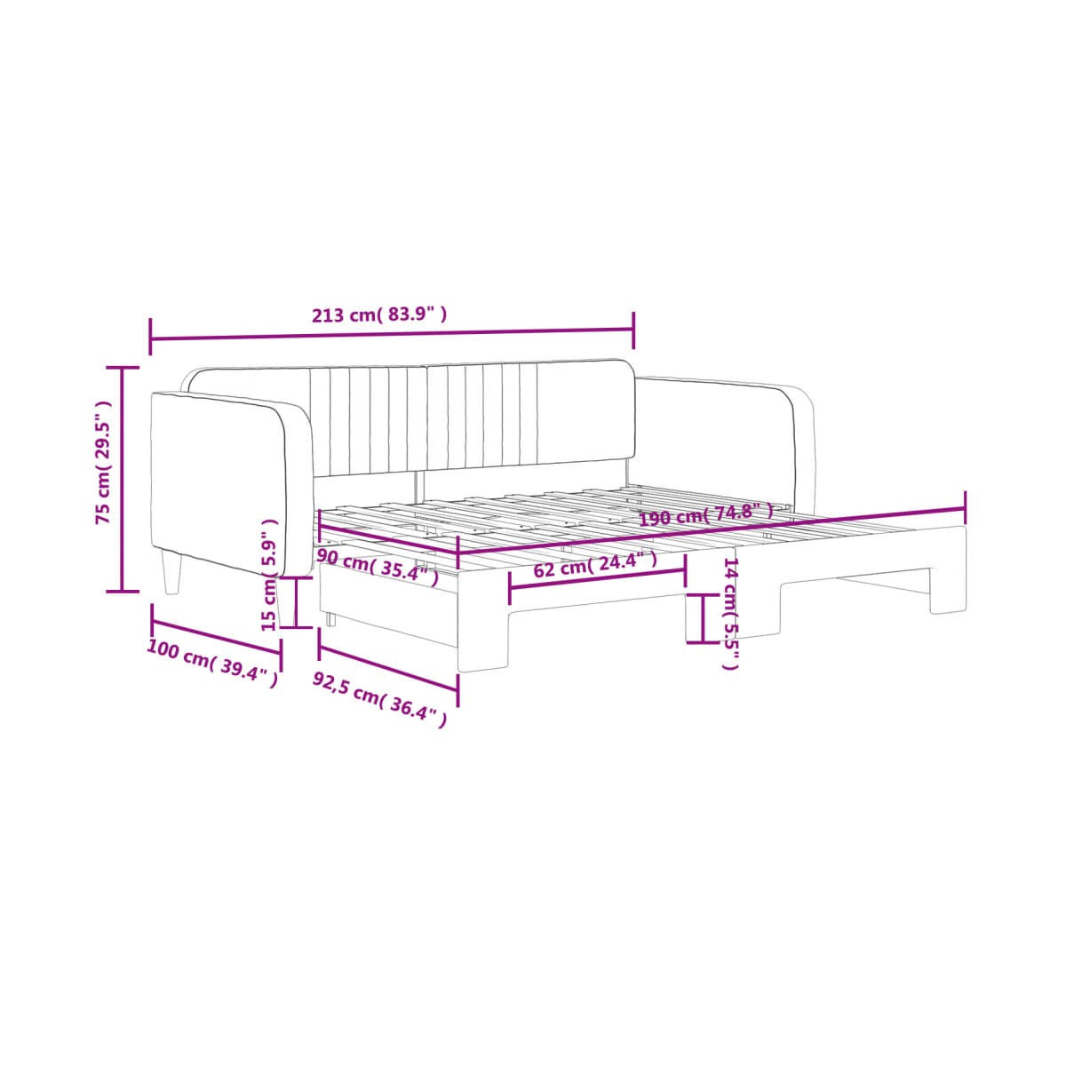 Este sofá cama 2 en 1 con cama nido, que sirve como sofá y cama, es un complemento práctico y llamativo para tu salón o dormitorio. Sofá cama versátil: El sofá cama funciona como sofá durante el día y se convierte fácilmente en una cama doble por la noche sacando la cama nido, lo que proporciona una solución práctica para recibir invitados y maximizar el espacio.Terciopelo suave y construcción sólida: Este sofá cama tiene una estructura resistente hecha de madera y metal y está tapizado en terciopelo suave y cómodo.Diseño moderno: ¡El sofá cama tiene un diseño moderno con líneas nítidas, un aspecto minimalista, así como luz natural, y añadirá un estilo moderno a la casa! Información útil:El colchón no está incluido con la cama. Ofrecemos una variada selección de colchones. Puedes echar un vistazo a nuestra tienda para buscar el correspondiente colchón.