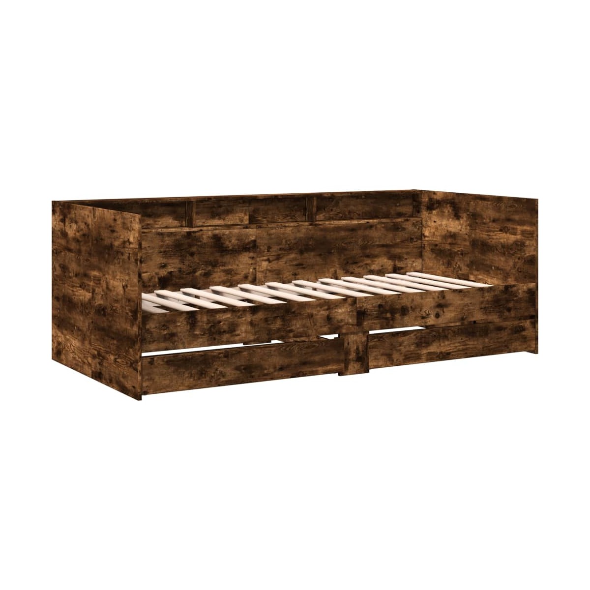 Este sofá cama 2 en 1 con cajones, que sirve como sofá y cama, es un complemento práctico y llamativo para tu salón o dormitorio. Sofá cama versátil: El sofá cama funciona como sofá durante el día y se convierte fácilmente en cama por la noche, lo que proporciona una solución práctica para recibir invitados y maximizar el espacio. Amplio espacio de almacenaje: Esta cama de invitados tiene 2 cajones con ruedas que brindan un amplio espacio para guardar ropa, calcetines, juguetes, cojines, etc.Sólida construcción: Este sofá cama tiene una estructura robusta de madera de ingeniería. La madera de ingeniería es de una calidad excepcional con una superficie lisa y cuenta con la fuerza, la estabilidad y la resistencia a la humedad. Información útil:Ten en cuenta que la entrega incluye únicamente una estructura de cama. El colchón no está incluido. Puedes echar un vistazo a nuestra tienda para buscar el correspondiente colchón.