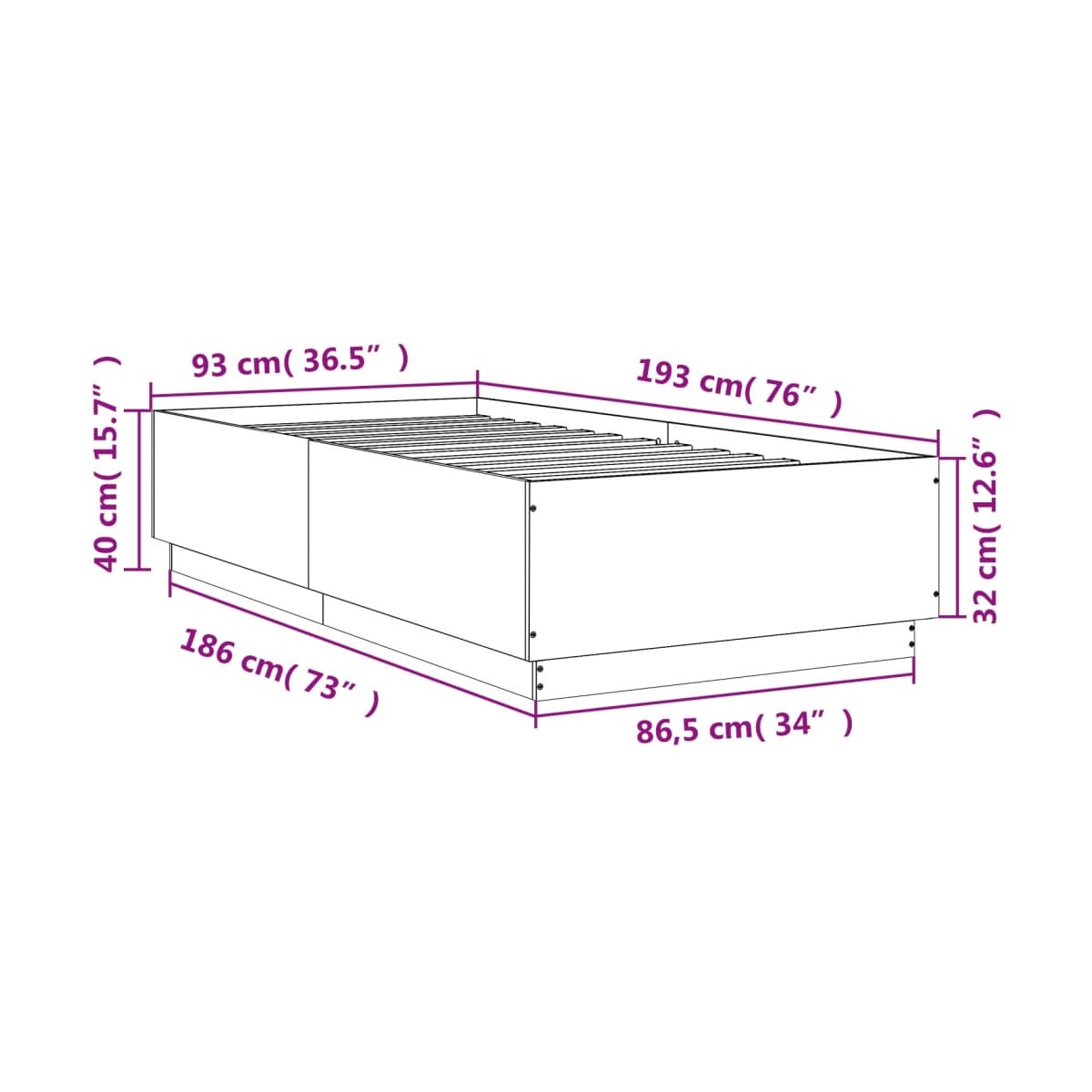 - Dimensiones totales: 193 x 93 x 40 cm (largo x ancho x alto)