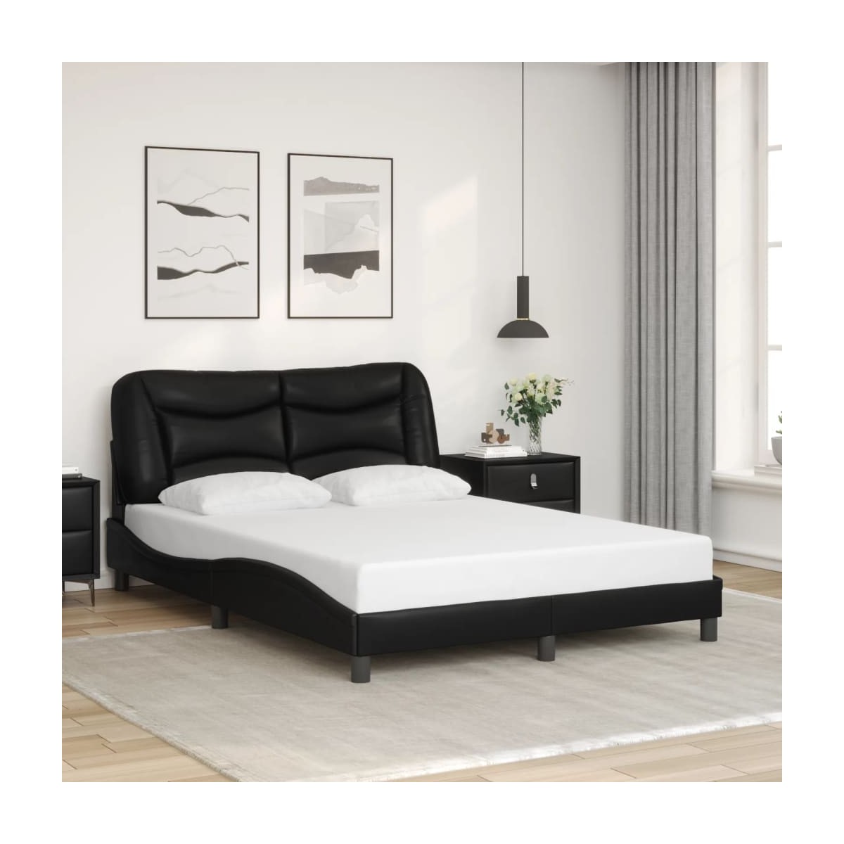 ¡Consigue tener un sueño reparador con esta estructura de cama con luces LED! Es un aporte acogedor para cualquier dormitorio. Material duradero: El cuero sintético de primera calidad es un material muy duradero. Es resistente a las manchas, por lo que es fácil de limpiar con un paño húmedo. Además, la superficie lisa da un aspecto lujoso y la belleza del cuero auténtico.Listones robustos: Los listones de madera contrachapada proporcionan una buena distribución del peso, lo que garantiza que el colchón se mantenga en tu sitio con cada giro y vuelta del cuerpo mientras duermes.Excelente apoyo: El cabecero de la cama te proporciona un excelente apoyo para la espalda mientras estás sentado en la cama para leer o ver la televisión.Tira de LED de colores: Alegra la oscuridad con luces LED de colores. Los cierres de gancho y bucle de la parte posterior del cojín del cabecero se pueden utilizar para fijar las luces LED.Diseño lateral ondulado: El look ondulado de la estructura de la cama es elegante y sofisticado, agregando un toque moderno y elegante a tu decoración, convirtiéndolo en el foco de atención de tu dormitorio. Información útil:El colchón no está incluido con la cama. Disponemos de una variada selección de colchones. Puedes echar un vistazo a nuestra tienda para buscar el colchón correspondiente.El producto tiene un conector USB que necesita una fuente de alimentación USB certificada de 5 V (no incluida).