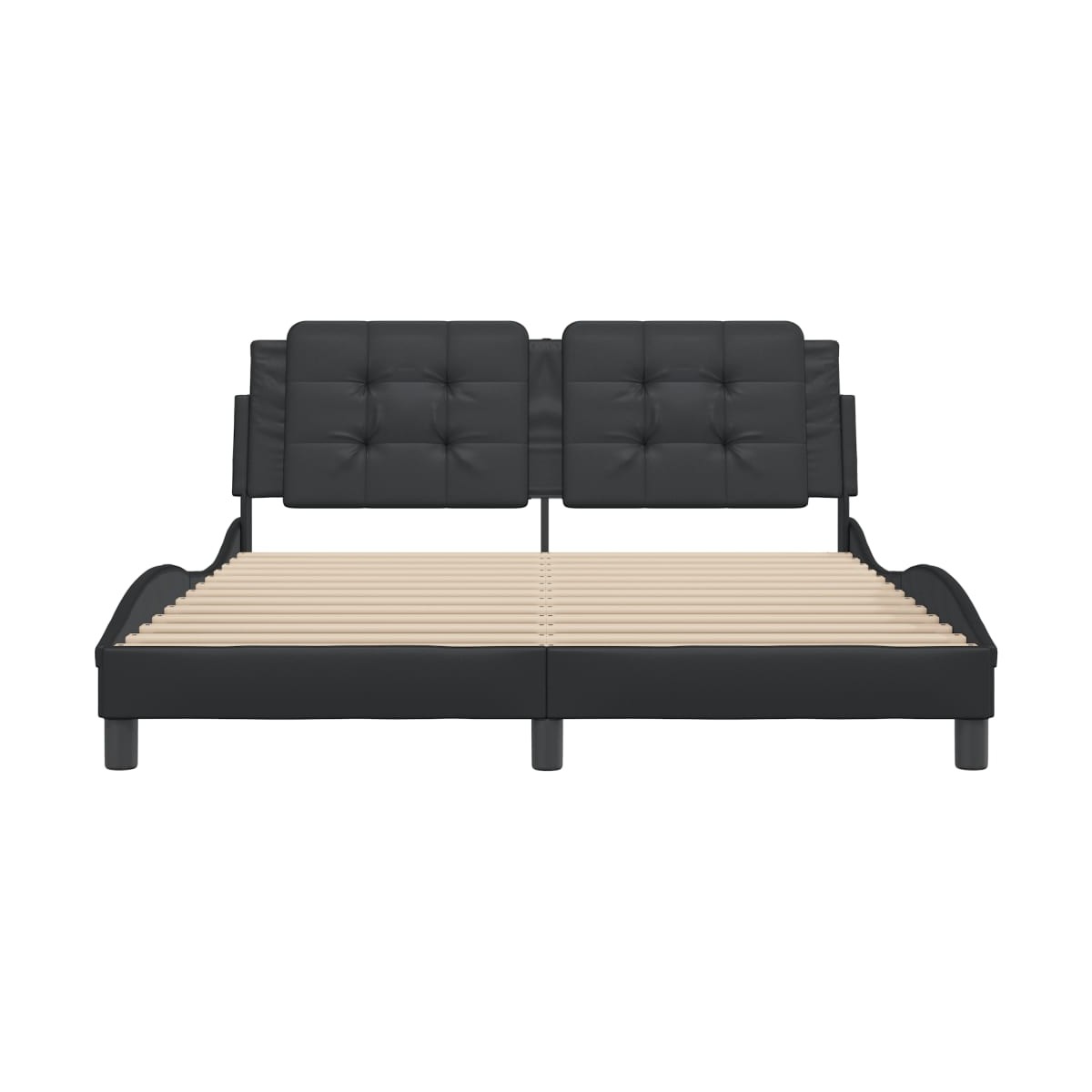 ¡Consigue un sueño más reparador con esta estructura de cama con cabecero! Es un aporte acogedor para cualquier dormitorio. Material duradero: El cuero sintético de primera calidad es un material muy duradero. Es resistente a las manchas, por lo que es fácil de limpiar con un paño húmedo. Además, la superficie lisa da un aspecto lujoso y la belleza del cuero auténtico.Listones robustos: Los listones de madera contrachapada proporcionan una buena distribución del peso, lo que garantiza que el colchón se mantenga en tu sitio con cada giro y vuelta del cuerpo mientras duermes.Excelente soporte: El cabecero acolchado está relleno de espuma para una comodidad ultrasuave y óptima, lo que te brinda un excelente soporte para la espalda mientras estás sentado en la cama para leer o ver la televisión.Diseño práctico: El cabecero acolchado tiene una cremallera para facilitar su instalación.Diseño lateral ondulado: El look ondulado de la estructura de la cama es elegante y sofisticado, agregando un toque moderno y elegante a tu decoración, convirtiéndolo en el foco de atención de tu dormitorio. Información útil:El colchón no está incluido con la cama. Disponemos de una variada selección de colchones. Puedes echar un vistazo a nuestra tienda para buscar el colchón correspondiente.