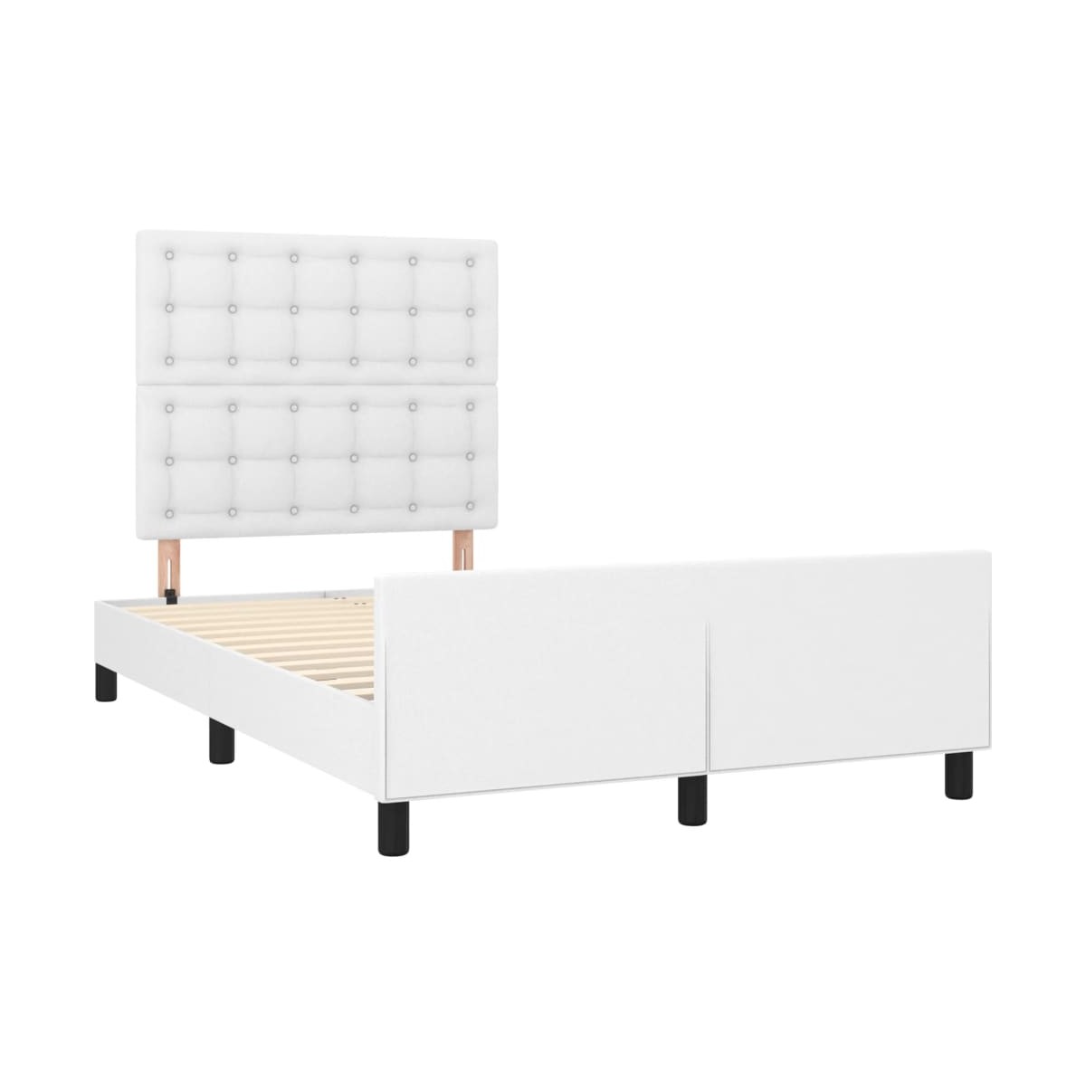 ¡Consigue un sueño más reparador con esta estructura de cama con cabecero! Es un aporte acogedor para cualquier dormitorio. Material duradero: El cuero sintético de primera calidad es un material muy duradero. Es resistente a las manchas, por lo que es fácil de limpiar con un paño húmedo. Además, la superficie lisa da un aspecto lujoso y la belleza del cuero auténtico.Altura regulable: El cabecero de la cama es ajustable en altura según tus preferencias.Patas de apoyo: La cama se apoya en patas robustas, que garantizan su estabilidad, seguridad y firmeza.Listones robustos: Los listones de madera contrachapada proporcionan una buena distribución del peso, lo que garantiza que el colchón se mantenga en tu sitio con cada giro y vuelta del cuerpo mientras duermes.Excelente apoyo: El cabecero de la cama te proporciona un excelente apoyo para la espalda mientras estás sentado en la cama para leer o ver la televisión. Información útil:La entrega incluye solo una estructura de cama. El colchón no está incluido. Puedes echar un vistazo en nuestra tienda para buscar colchones a juego.
