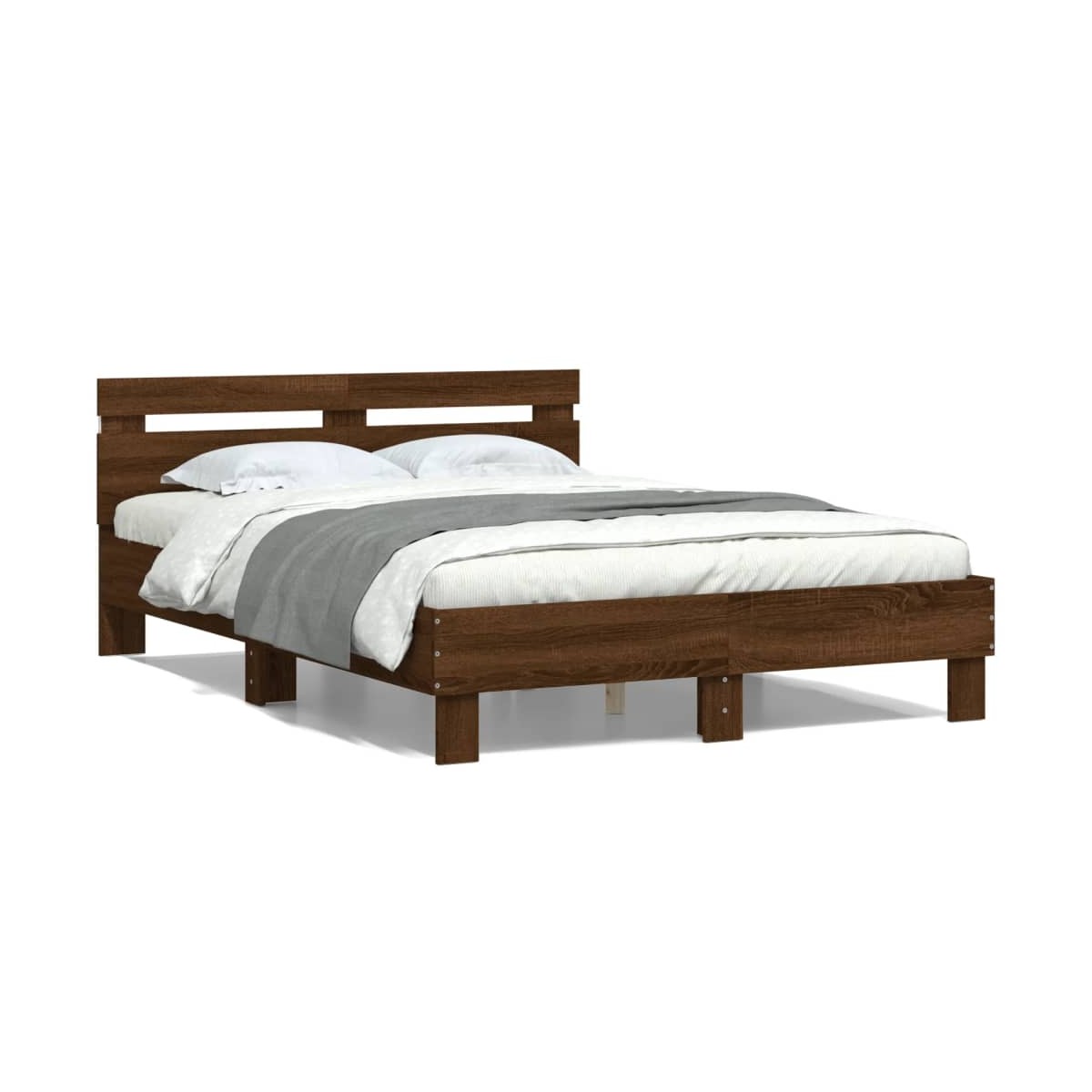 ¡Consigue tener un sueño reparador con esta estructura de cama con luz LED! Es un aporte acogedor para cualquier dormitorio. Material duradero: La madera de ingeniería tiene una calidad excepcional, con una superficie lisa y también cuenta con fuerza, estabilidad y resistencia a la humedad.Luces LED RGB: La cama está equipada con luces LED RGB. Con varios menús personalizables, puedes cambiar fácilmente el color de las luces e incluso configurarlas para que se ajusten automáticamente. Estas luces LED no sólo realzan el look moderno de la base de la cama, sino que también aumentan su atractivo.Excelente soporte: El cabecero de la cama brinda un excelente soporte para la espalda mientras estás sentado en la cama para leer o ver la televisión.Listones robustos: Los listones de madera contrachapada proporcionan una buena distribución del peso, lo que garantiza que el colchón se mantenga en tu sitio con cada giro y vuelta del cuerpo mientras duermes. Información útil:El colchón no está incluido con la cama. Disponemos de una variada selección de colchones. Puedes echar un vistazo a nuestra tienda para buscar el colchón correspondiente.El producto tiene un conector USB que necesita una fuente de alimentación USB certificada de 5 V (no incluida).