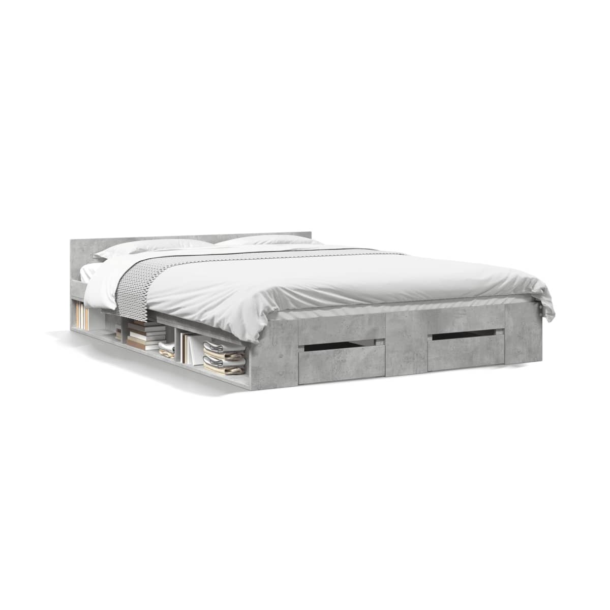 ¡Añade un toque moderno a tu dormitorio con esta estructura de cama con cajones! Es un aporte práctico y decorativo para tu hogar. Material duradero: La estructura de la cama está hecha de madera de ingeniería. La madera de ingeniería tiene una calidad excepcional, con una superficie lisa y también con fuerza, estabilidad y resistencia a la humedad.Listones robustos: Los listones de madera contrachapada proporcionan una buena distribución del peso, lo que garantiza que el colchón se mantenga en tu sitio con cada giro y vuelta del cuerpo mientras duermes.Función de almacenamiento: Los cajones de la cama y los compartimentos laterales incluidos brindan un amplio espacio de almacenamiento para guardar tus elementos esenciales, manteniendo tu habitación limpia y ordenada. Información útil:El colchón no está incluido con la cama. Disponemos de una variada selección de colchones. Puedes echar un vistazo a nuestra tienda para buscar el colchón correspondiente.
